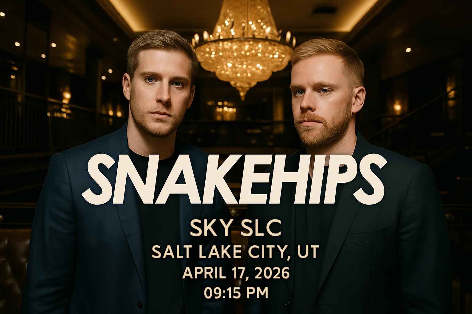 Discover Snakehips live at Sky SLC in Salt Lake City UT on April 17 2026 at 0915 PM. Experience chart-topping electronic music and unforgettable energy at one of the premier Salt Lake City concert venues. Secure your spot and maximize savings using exclusive Snakehips – Sky SLC promo codes available through RSVP Event Agency. Fans searching for Snakehips Sky SLC discount tickets or verified event coupon codes can find limited-time deals here. Do not miss your chance to see Snakehips perform in the heart of downtown Salt Lake City with special event savings available now.
