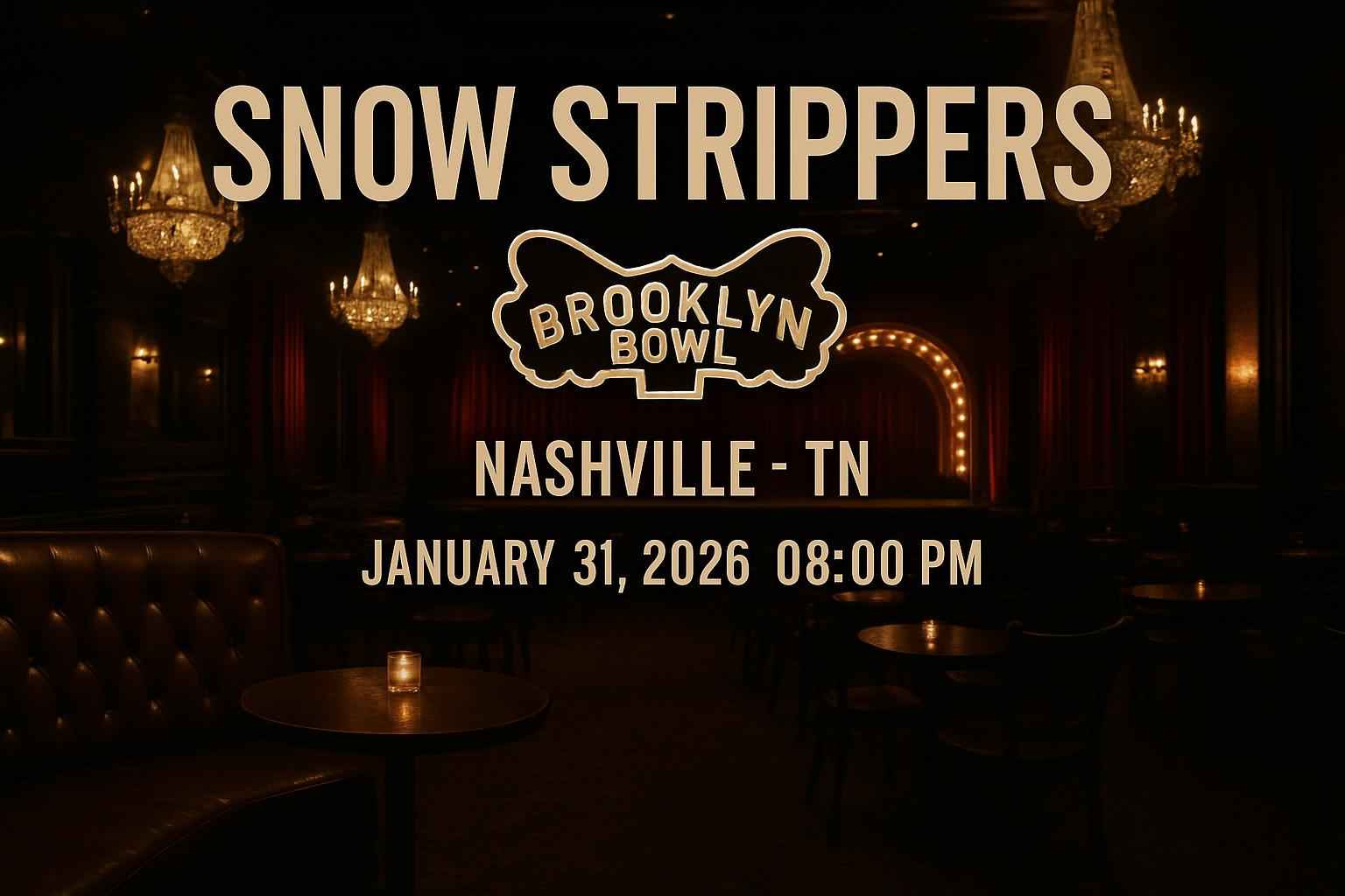 Snow Strippers take the stage at 800 PM with doors opening at 700 PM at Brooklyn Bowl Nashville.