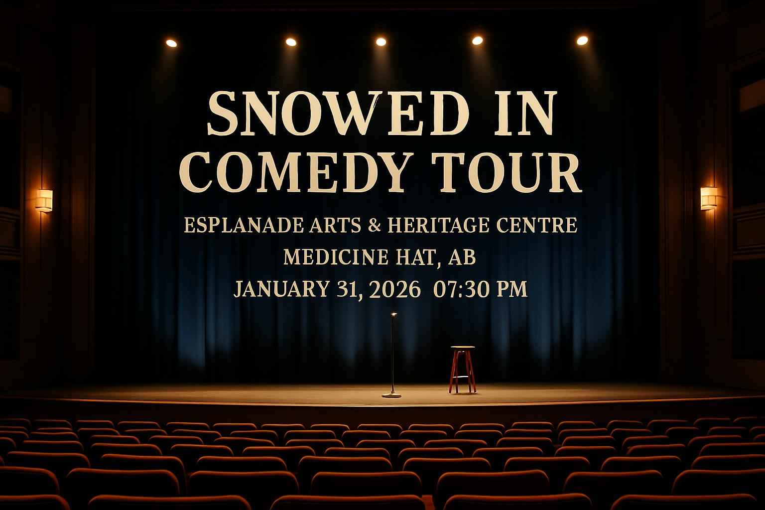 TLDR: Enjoy the Snowed In Comedy Tour at Esplanade Arts and Heritage Centre, Medicine Hat on January 31, 2026, at 7:30 PM. Featuring top Canadian comedians, this popular event offers exclusive RSVP Event Agency promo codes for discounted tickets. Early purchase is advised due to frequent sellouts. Convenient parking and group discounts are available. Secure your seats now!