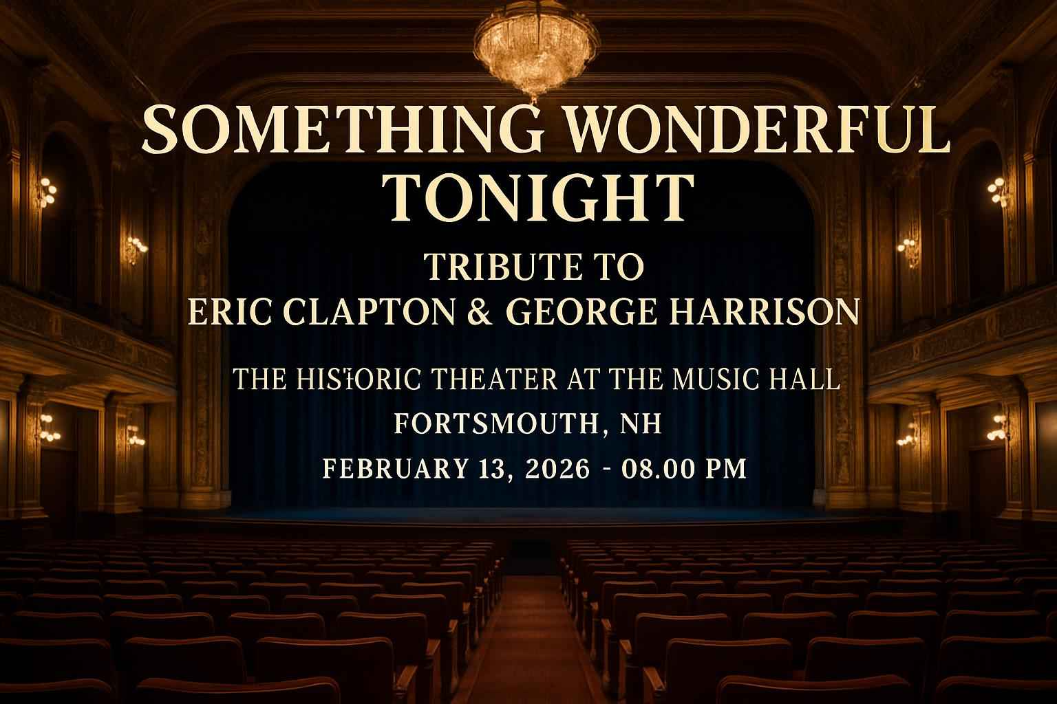 Experience Something Wonderful Tonight – Tribute to Eric Clapton and George Harrison at The Historic Theater at The Music Hall in Portsmouth NH on February 13 2026 at 8 PM. This event brings the music of two legendary artists to life in one of New Hampshires most iconic venues. Secure your seat and enjoy authentic performances that capture the spirit of Clapton and Harrison live in Portsmouth.