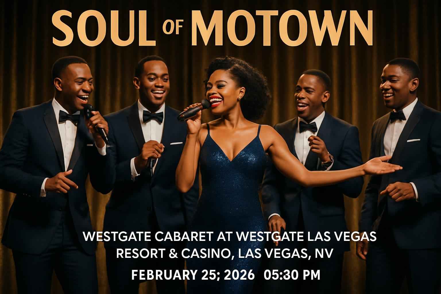 Experience the thrill of classic Motown hits live with Soul Of Motown at Westgate Cabaret inside Westgate Las Vegas Resort and Casino on February 25 2026 at 0530 PM. This high-energy tribute brings the heart and soul of Detroit to the Las Vegas Strip featuring timeless favorites performed with authentic style. Locals and visitors searching for Soul Of Motown Las Vegas tickets promo codes or discount ticket options can access exclusive savings directly through RSVP Event Agency. Secure the best seats and enjoy unbeatable deals on this must-see Las Vegas live music event.