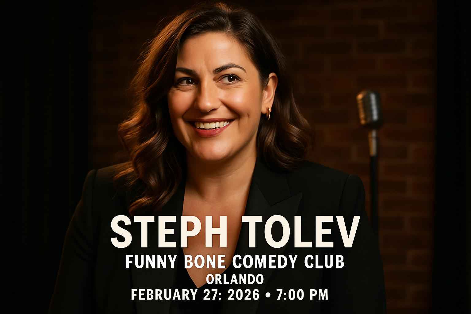 Steph Tolev performs at Funny Bone Comedy Club Orlando on February 27 2026 at 7 PM.
