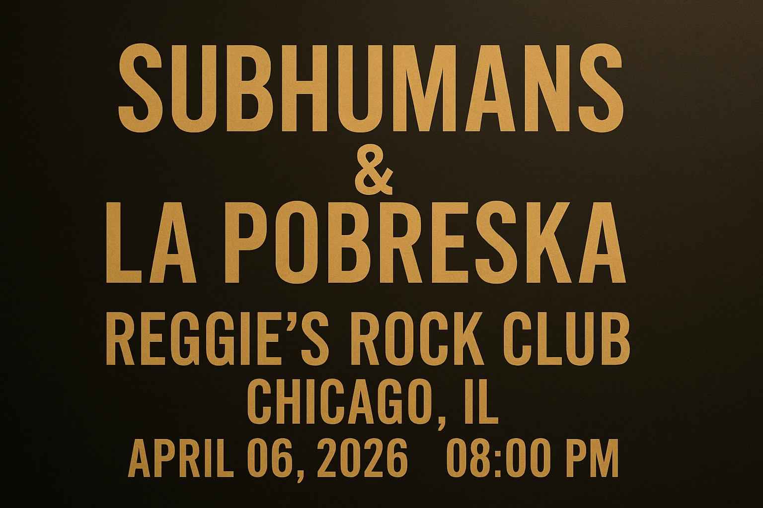 Subhumans & La Pobreska take the stage at Reggie’s Rock Club Chicago IL on April 06 2026 at 8 PM. Doors open early for general admission and VIP ticket holders. The venue offers excellent acoustics and an intimate setting for this high-energy punk show. Nearby parking and easy CTA access make it convenient for local and visiting fans seeking a true Chicago live music experience.