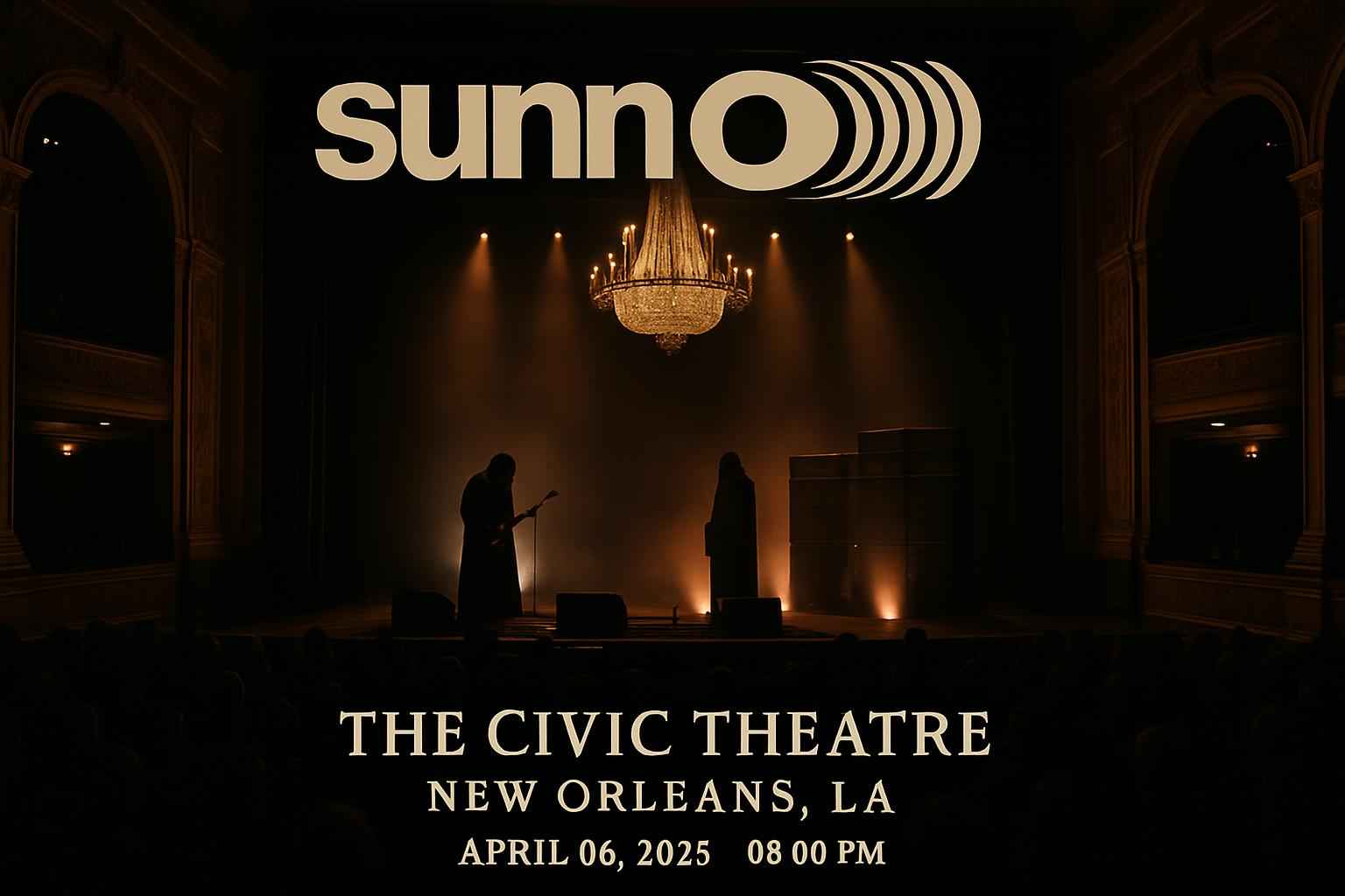 Experience the legendary drone metal performance of Sunn O))) at The Civic Theatre in New Orleans LA on April 06 2026 at 08:00 PM. Secure exclusive promo codes for Sunn O))) tickets through RSVP Event Agency to maximize your savings and guarantee your spot at one of the most anticipated concerts in New Orleans. Explore the full event details and enjoy special discount offers for the best ticket prices available today.