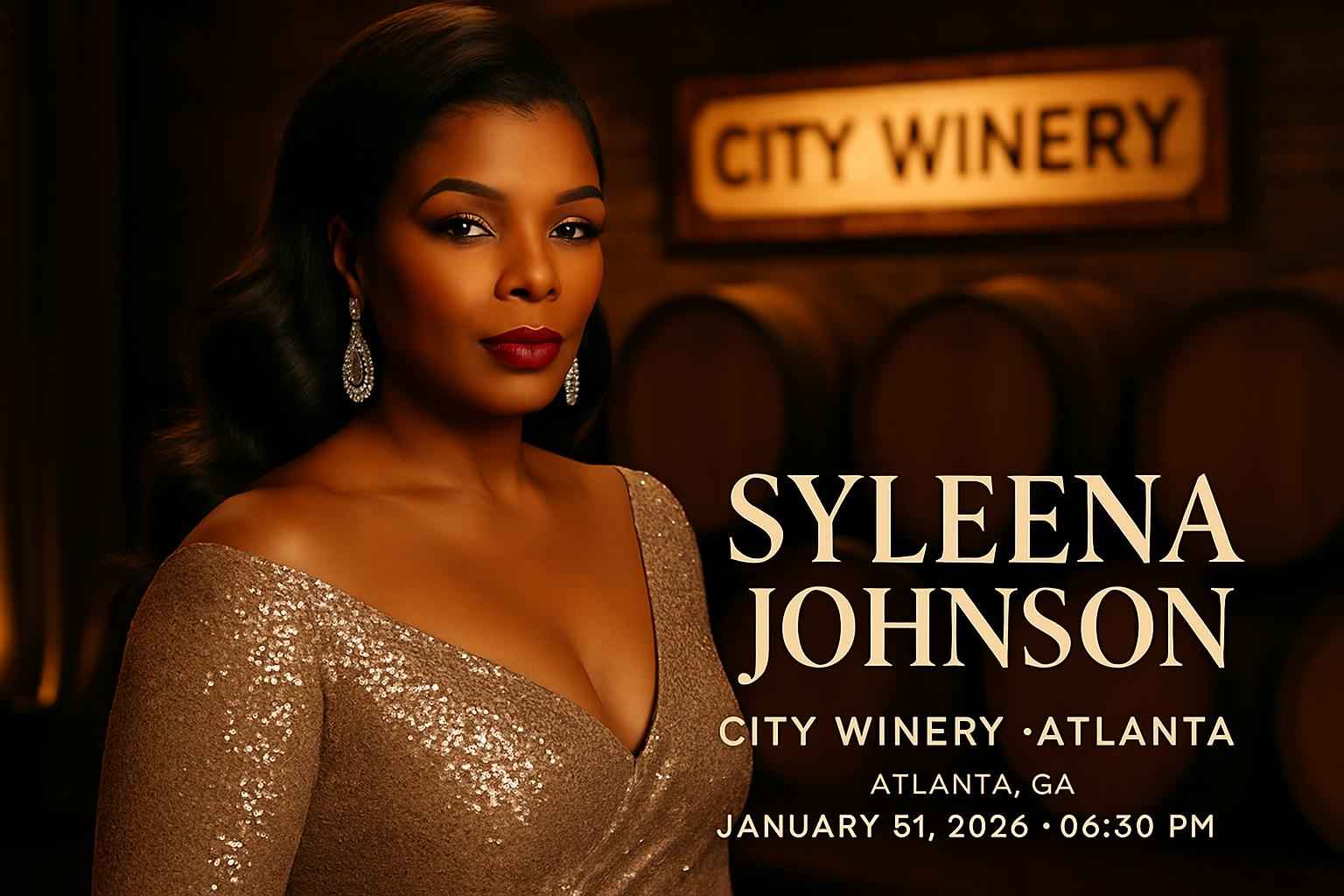 Syleena Johnson brings her iconic R and B and soul performance to City Winery Atlanta on January 31 2026. Doors open at 630 PM with seating options for groups and individuals. City Winery Atlanta is located at 650 North Avenue NE Atlanta GA in the vibrant Ponce City Market district. Arrive early for unique dining and beverage options before the concert.
