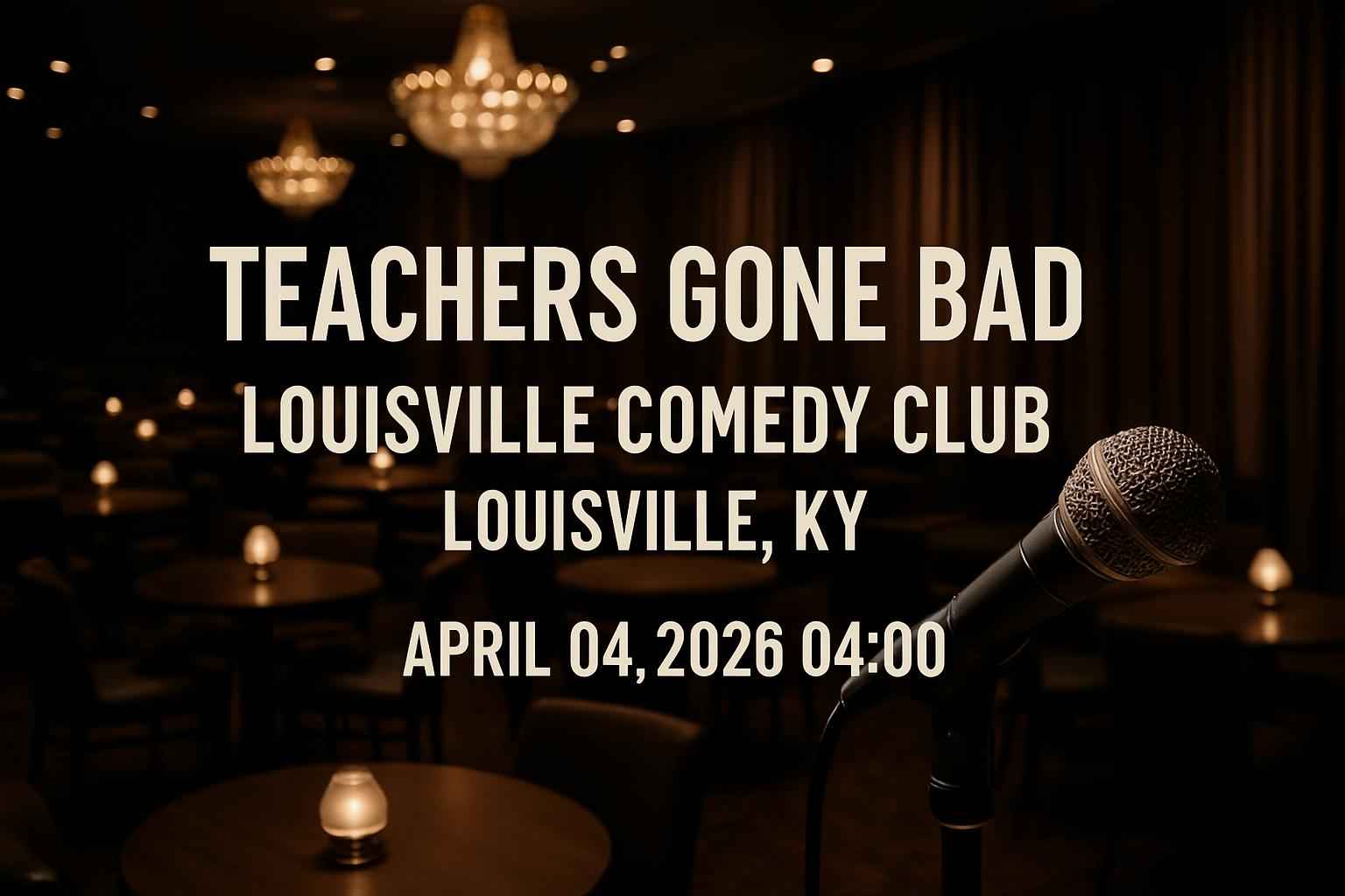 Discover the ultimate night out at Teachers Gone Bad – Louisville Comedy Club in Louisville KY on April 04 2026 at 0400 PM. This comedy showcase turns classroom tales into unforgettable laughter packed with relatable stories and sharp wit from seasoned educators turned comedians. Experience live standup at one of downtown Louisville’s top comedy venues and enjoy unbeatable savings on tickets through RSVP Event Agency with exclusive promo codes and event discounts designed for local event seekers.