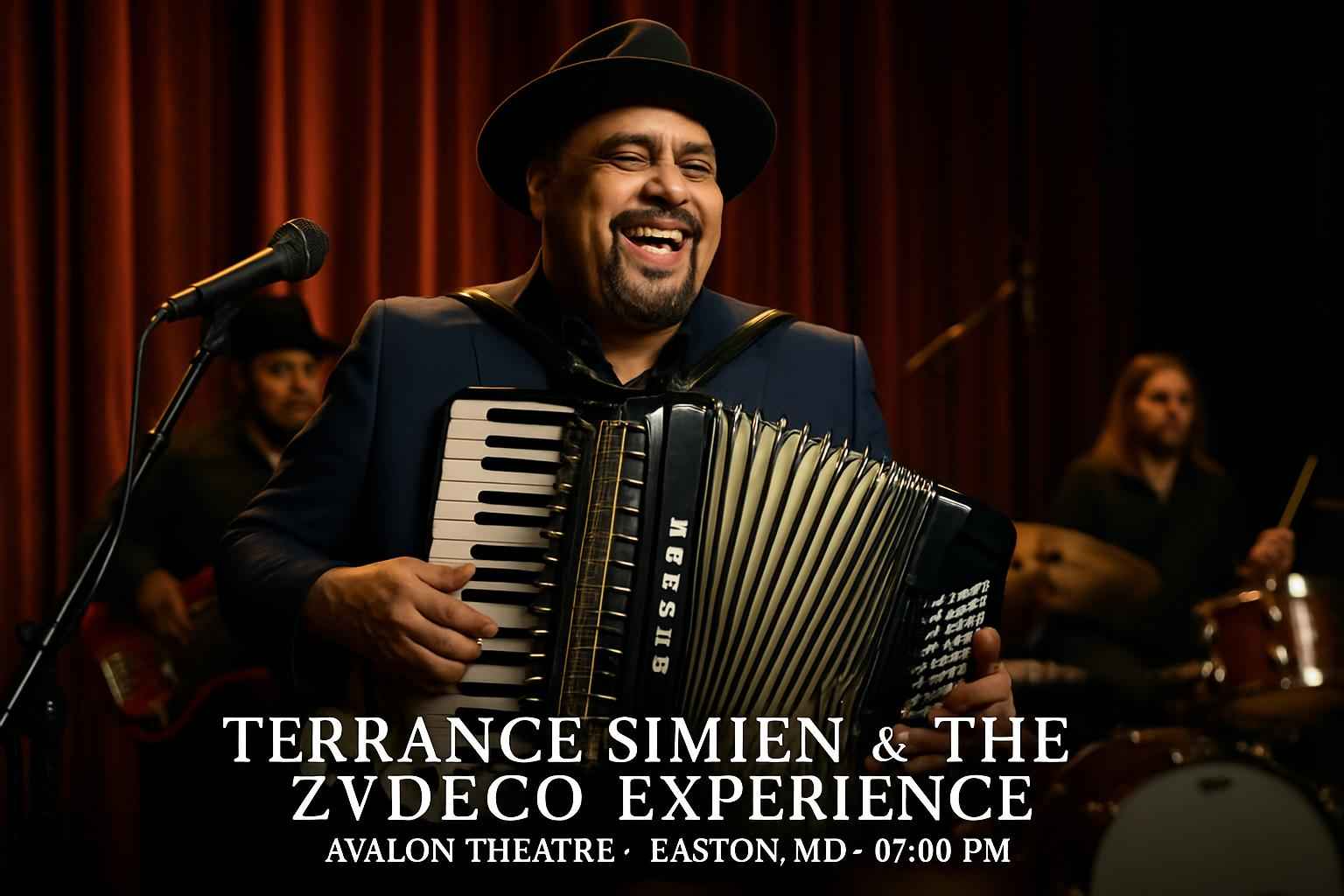 Terrance Simien & The Zydeco Experience bring Grammy-winning zydeco music to Avalon Theatre in Easton MD for an unforgettable live show. With decades of touring and a signature Creole sound the group delivers crowd-pleasing performances featuring accordion rhythms and soulful vocals. Get local event details, ticket pricing, and seating options for this highly anticipated February concert.