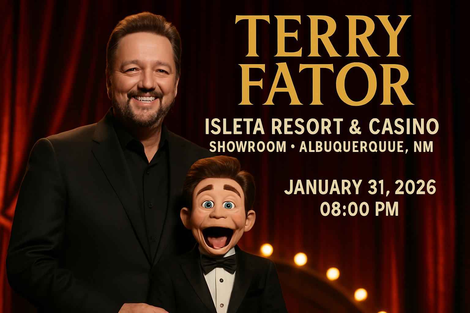 Terry Fator returns to Albuquerque at the Isleta Resort & Casino Showroom on January 31 2026. The show starts at 8 PM and features Fator’s signature blend of celebrity impressions and family-friendly humor. This highly anticipated event attracts fans searching for Terry Fator tickets Albuquerque NM and VIP packages. The Isleta Resort & Casino venue offers premier seating and convenient access for guests seeking the best comedy shows in Albuquerque.