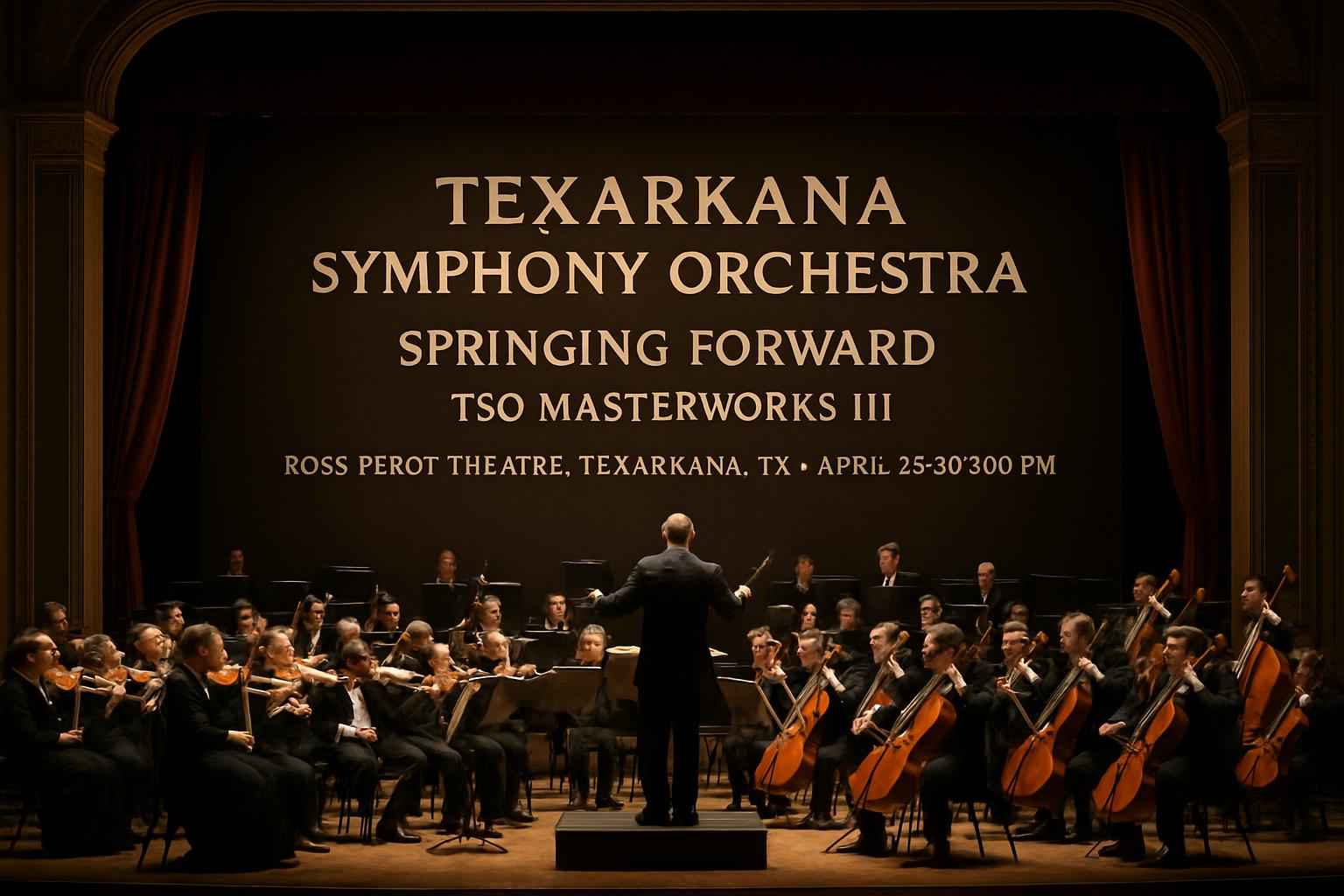 The Springing Forward TSO Masterworks III concert brings world-class symphonic music to Texarkana at the historic Ross Perot Theatre. Enjoy a curated selection of orchestral works performed by the acclaimed Texarkana Symphony Orchestra. This event draws music lovers from across northeast Texas and southwest Arkansas seeking an unforgettable classical music experience. Doors open at 6 PM for early seating.