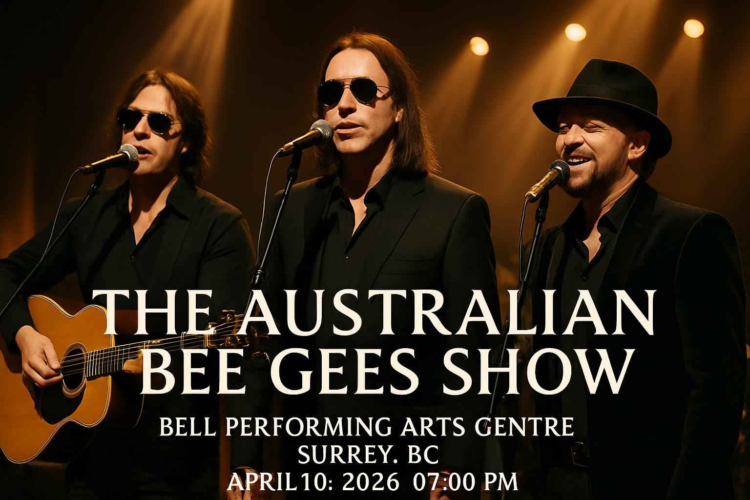The Australian Bee Gees Show begins at 7:00 PM on April 10 2026 at Bell Performing Arts Centre in Surrey BC.