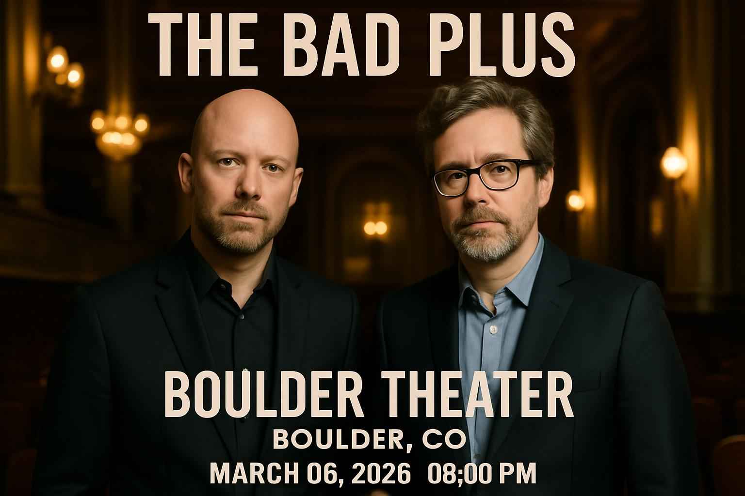The Bad Plus performs a jazz fusion concert at Boulder Theater, Boulder CO on March 6, 2026, at 8 PM. RSVP Event Agency offers verified promo codes for discounted tickets, interactive seating charts, and last-minute deals. The ADA-accessible venue is centrally located with parking options. Secure your seat early for this immersive live jazz experience.