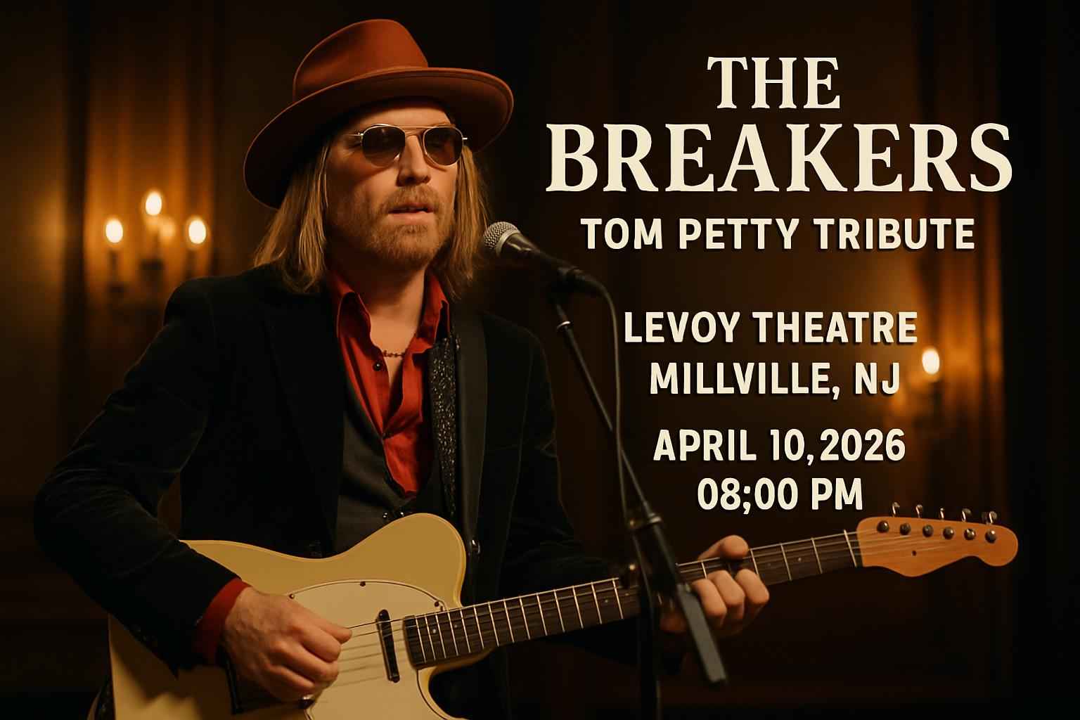 Celebrate the legacy of Tom Petty with The Breakers tribute band at the historic Levoy Theatre located in the heart of downtown Millville NJ. Doors open on April 10 2026 at 7 PM. The show begins at 8 PM offering fans of all ages a unique live music experience. Secure your The Breakers – Tom Petty Tribute tickets and enjoy an authentic sound that captures the spirit of Tom Petty and the Heartbreakers.