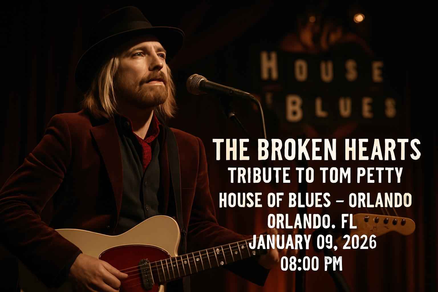 Experience The Broken Hearts – Tribute to Tom Petty live at House Of Blues Orlando on January 9 2026 at 8 PM. This Orlando concert celebrates Tom Petty’s legendary sound with spot-on performances and authentic energy. Secure exclusive RSVP Event Agency promo codes for discounted tickets and enjoy the best seats in Orlando FL for a night filled with classic rock hits. Enjoy search-optimized ticket deals and hassle-free checkout for this top-rated House Of Blues event.