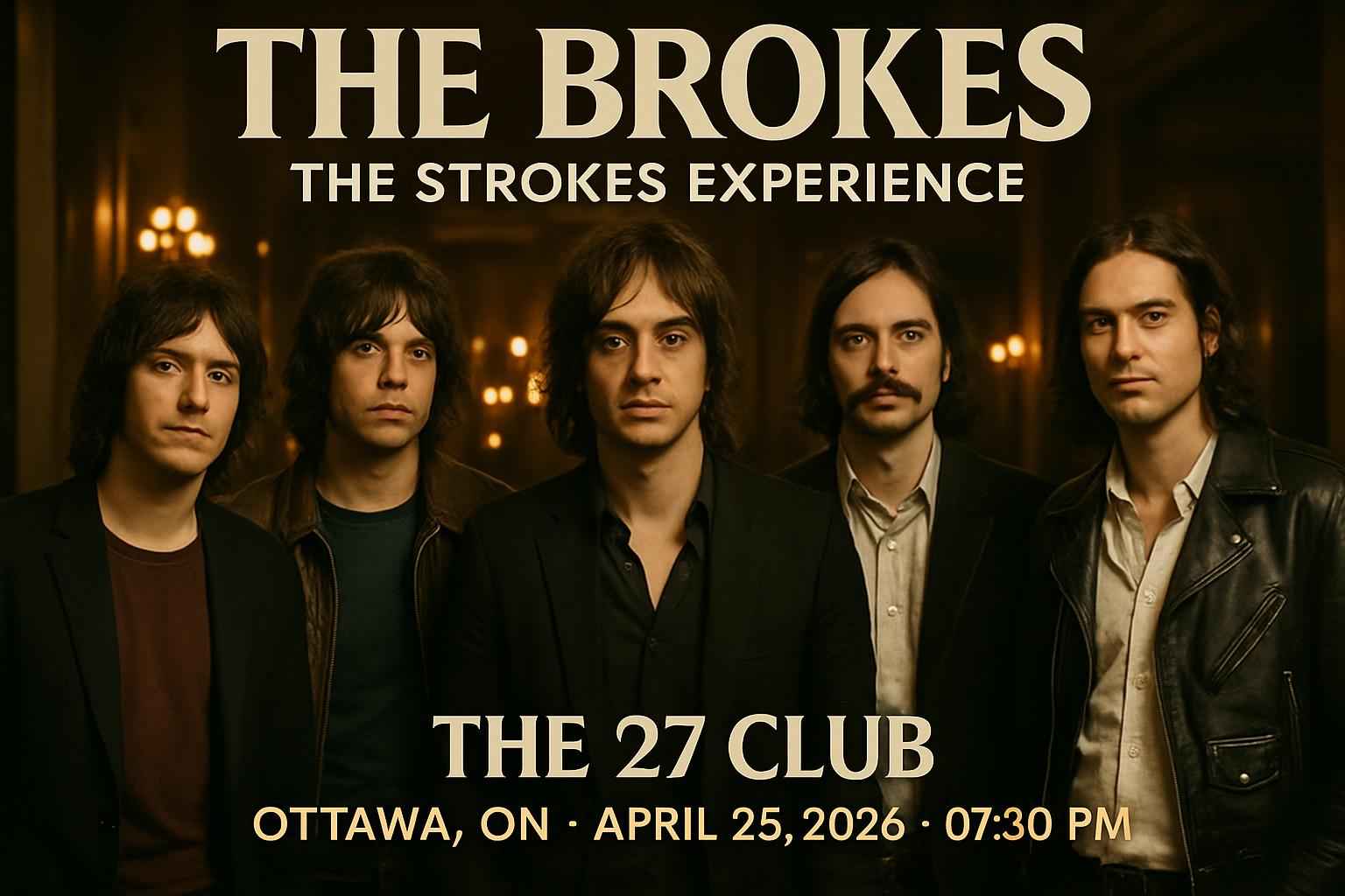 The Brokes bring the iconic sound of The Strokes to The 27 Club located in downtown Ottawa. This live tribute show offers fans an authentic concert experience with all the hits and signature style. Doors open at 7 PM at 27 York Street Ottawa ON. Perfect for rock fans and concert-goers searching for live music events Ottawa April 2026.