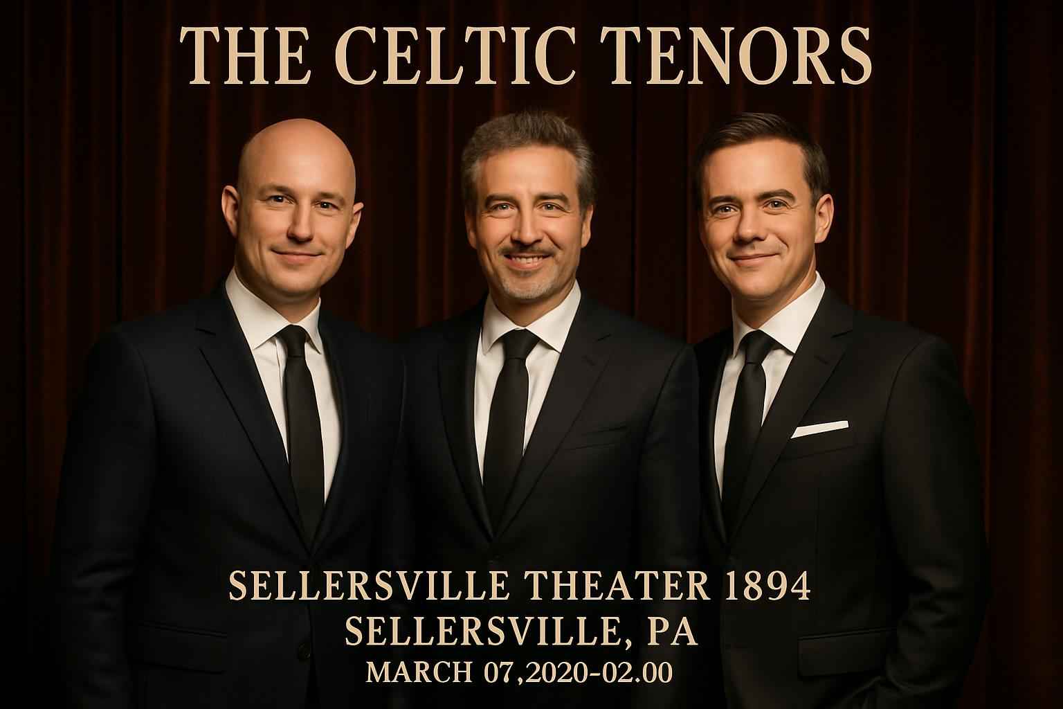 The Celtic Tenors take the stage on March 07 2026 at 2:00 PM at Sellersville Theater 1894 located at 24 W Temple Ave Sellersville PA. This historic venue offers exceptional acoustics and a welcoming atmosphere. Guests can expect a diverse setlist spanning classical hits Irish favorites and contemporary standards performed by internationally acclaimed tenors. Early ticket booking is recommended for best seat selection and maximum savings.