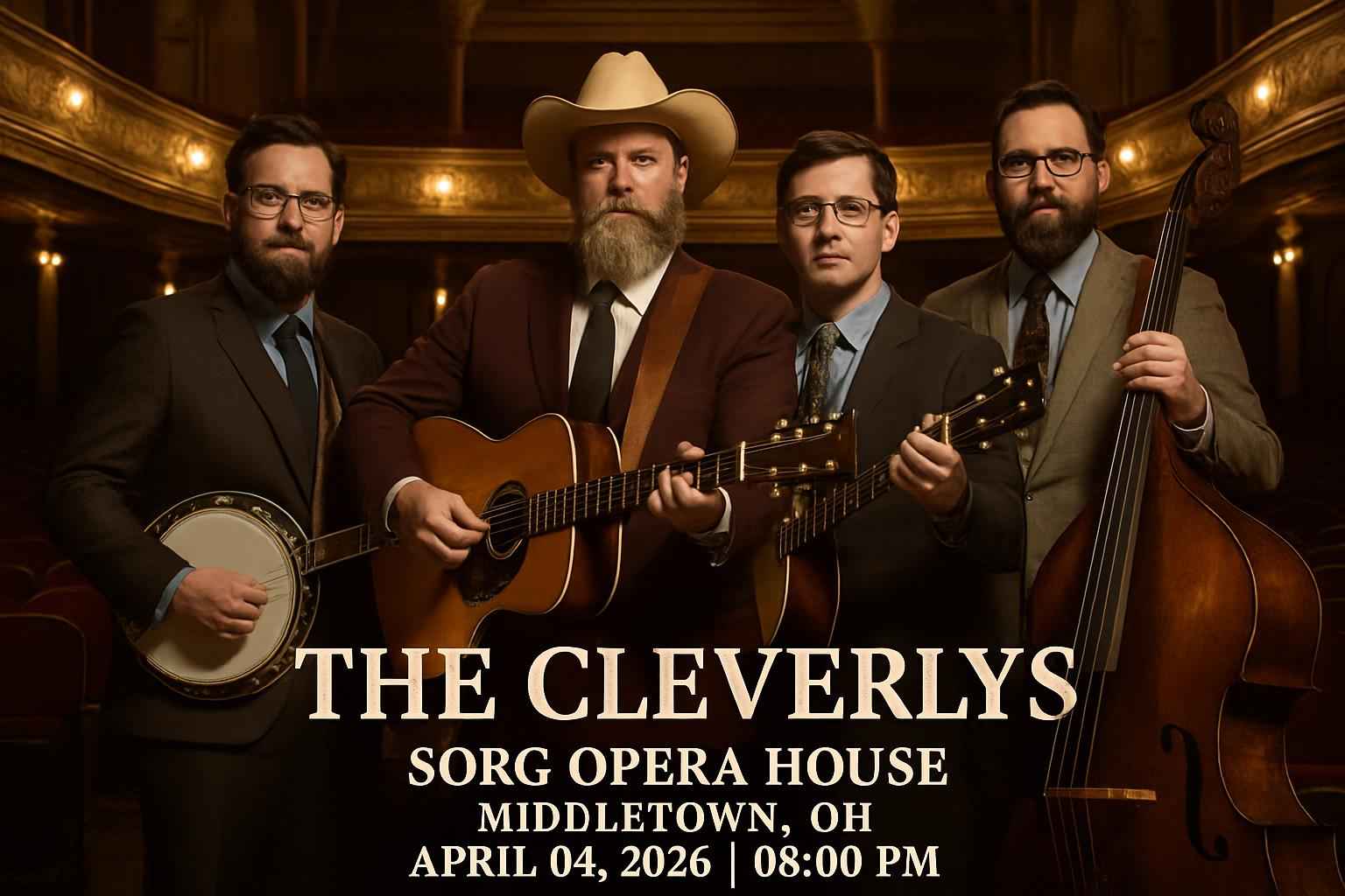 Join The Cleverlys at Sorg Opera House for an evening of high-energy bluegrass and comedy. The show starts at 8 PM on April 04 2026 in downtown Middletown OH. Known for their viral performances and musical talent The Cleverlys bring a one-of-a-kind experience to this historic venue. Get premium seats and use verified promo codes to maximize your concert value.