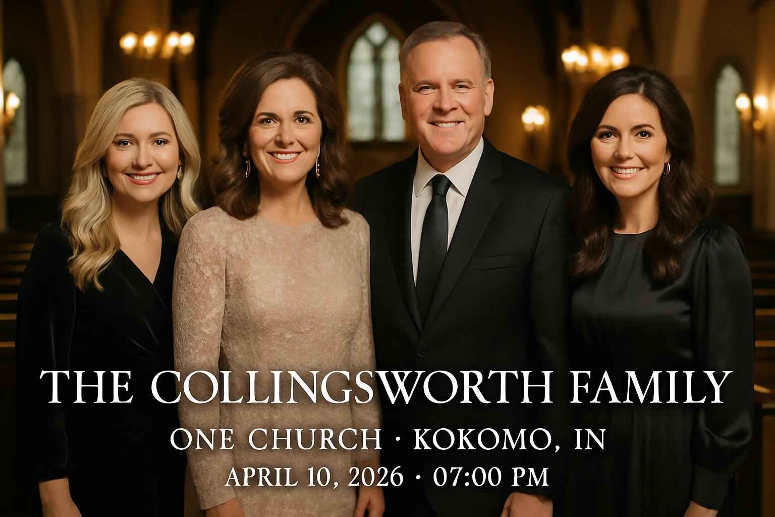 The Collingsworth Family returns to One Church in Kokomo IN for a live concert on April 10 2026 at 7 PM. Enjoy powerful harmonies and uplifting gospel music in one of Kokomo’s top venues. Find parking directions venue info and the latest updates for this special Indiana music event. Reserve your seat now and experience world-class gospel in the heart of Kokomo.