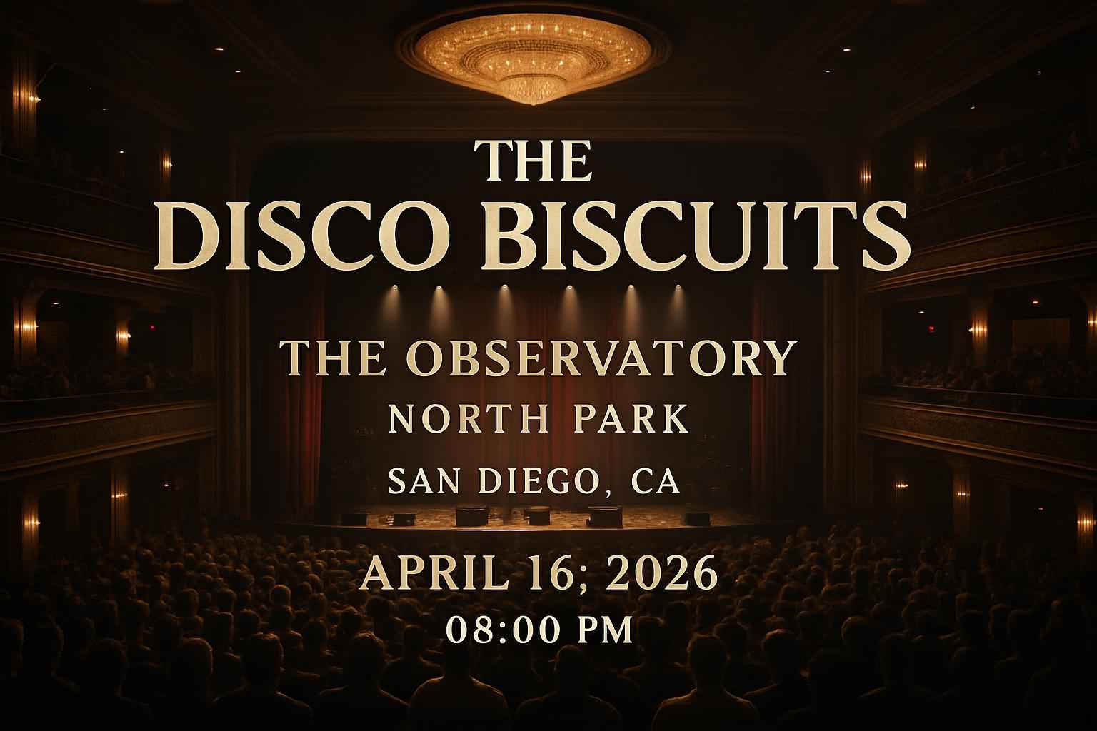 The Disco Biscuits begin their performance at 8:00 PM on April 16 2026 at The Observatory – North Park San Diego.