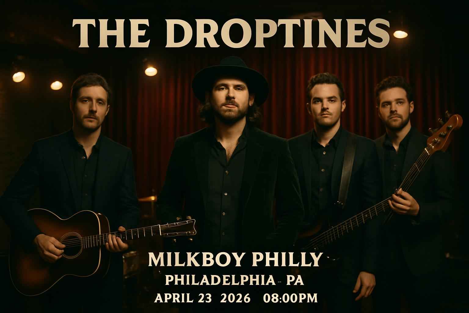 Join The Droptines at MilkBoy Philly for a memorable night of indie country music right in the heart of Philadelphia. This April 23 show promises top-tier sound an intimate venue atmosphere and the chance to see one of the rising acts on the scene. Find event start time parking tips nearby dining suggestions and more for a seamless night out.