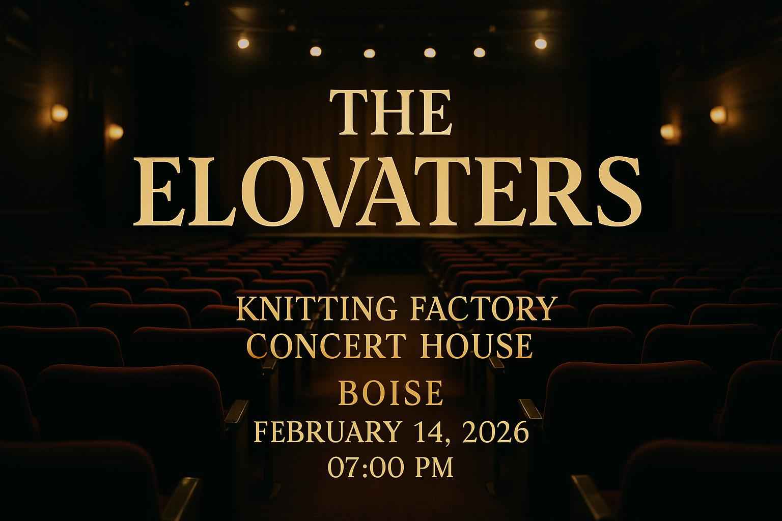 The Elovaters perform at Knitting Factory Concert House Boise on February 14 2026 at 7 PM.
