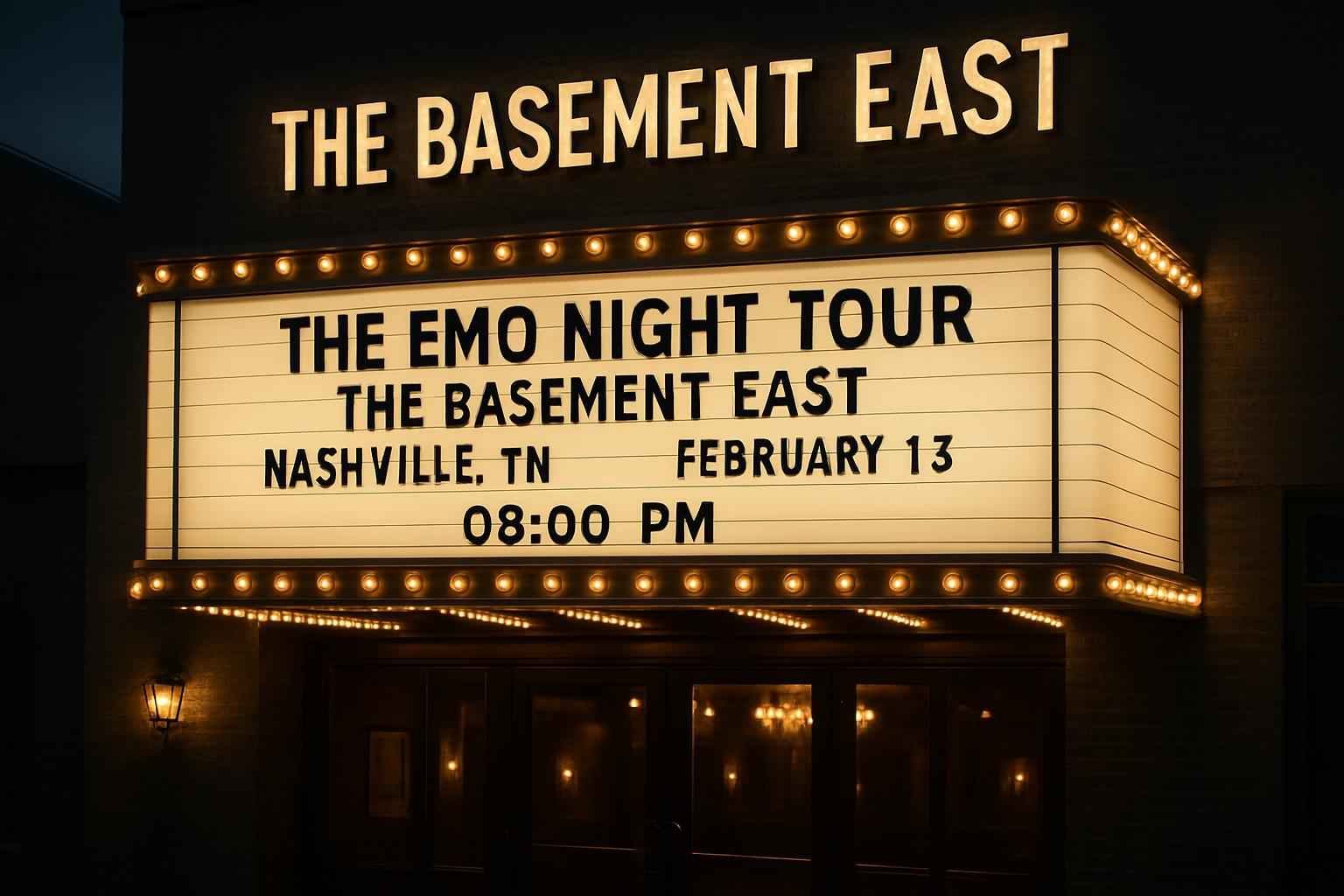 Doors open at 8:00 PM for The Emo Night Tour at The Basement East in Nashville on February 13 2026. Arrive early for the best spots and pre-show activities.