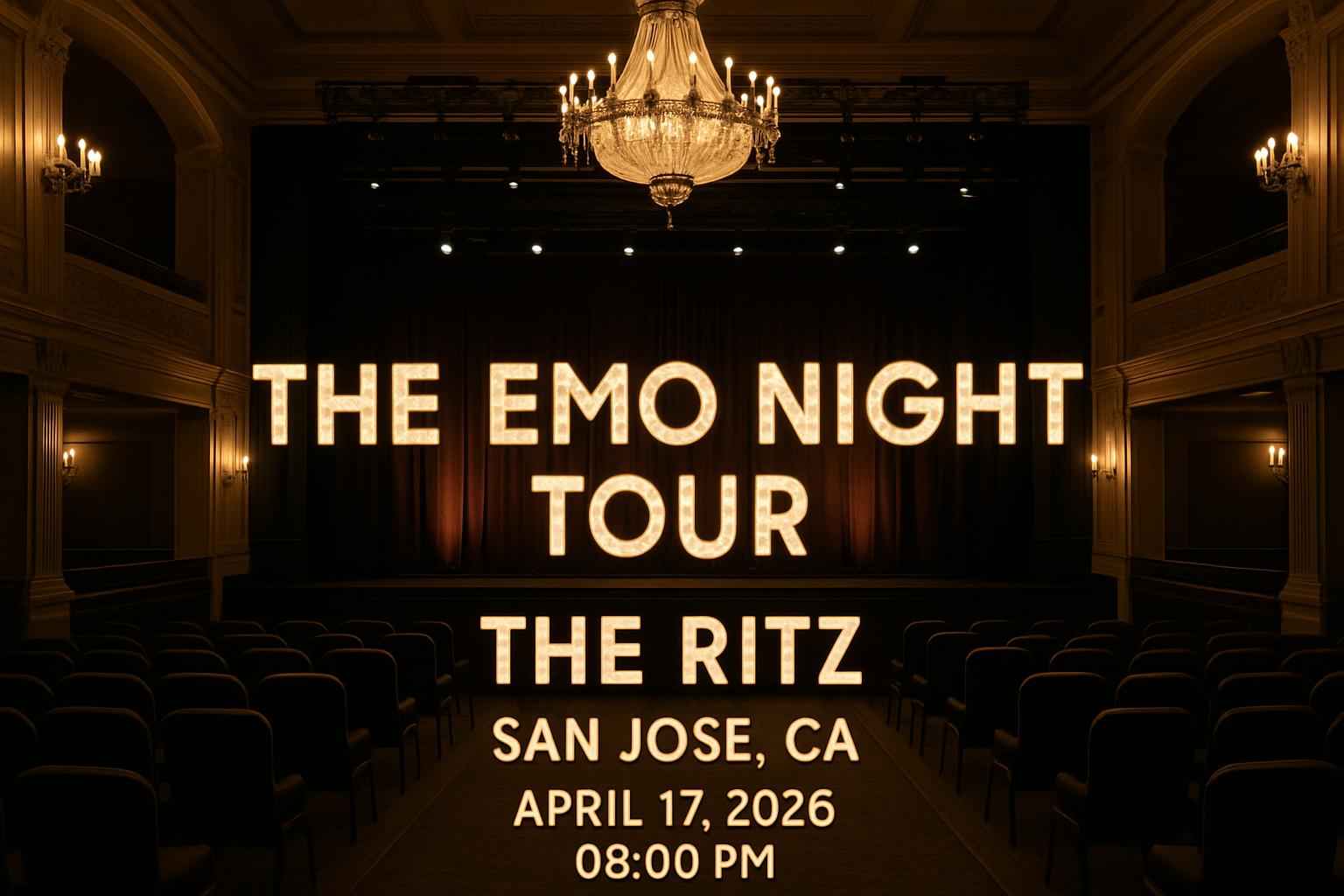 The Emo Night Tour brings together fans of classic and modern emo music for a unique club experience. On April 17 2026 doors open at 800 PM at The Ritz 400 S First St San Jose CA. The event features top DJs spinning tracks from bands like My Chemical Romance Fall Out Boy and Paramore. Attendees can expect themed photo ops exclusive event merchandise and a welcoming community vibe. This is a must-attend event for music lovers in the San Jose area seeking an unforgettable night out.
