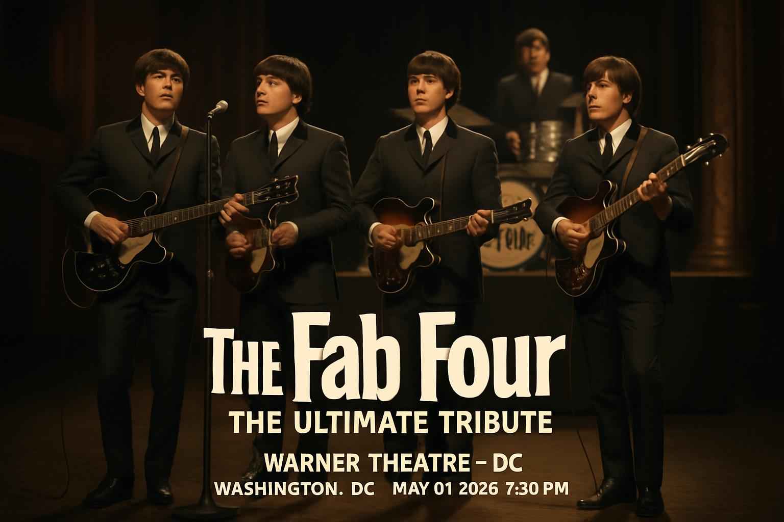 Experience the magic of The Fab Four – The Ultimate Tribute at Warner Theatre in Washington DC on May 1 2026 at 730 PM. Recognized as the worlds premier Beatles tribute show this event brings legendary hits and authentic performances to the heart of DC. Secure your tickets for an unforgettable night of music nostalgia and live entertainment. Discover exclusive coupon codes for The Fab Four at Warner Theatre through RSVP Event Agency and maximize your savings on premium seats.