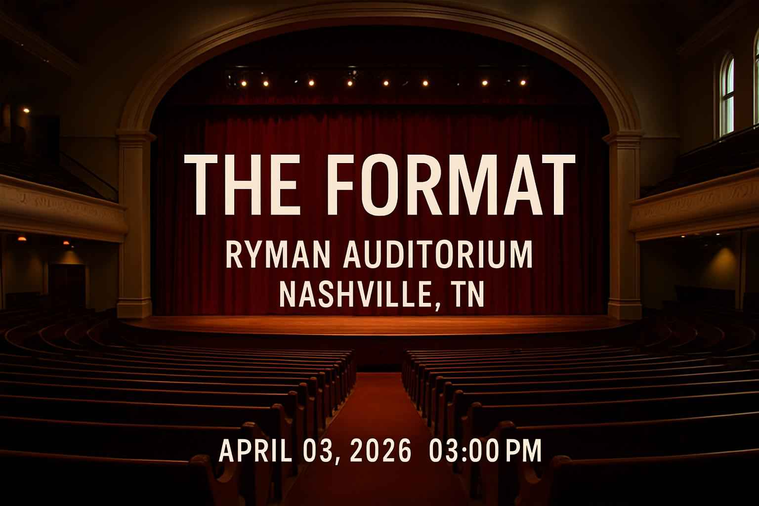 Experience The Format live at the legendary Ryman Auditorium in Nashville TN on April 03 2026 at 8 PM. Secure the lowest ticket prices with exclusive coupon codes from RSVP Event Agency. Find verified promo codes for The Format Ryman Auditorium event and enjoy top savings when you purchase today. Enjoy a seamless ticket buying experience with local Nashville support and trusted event access.