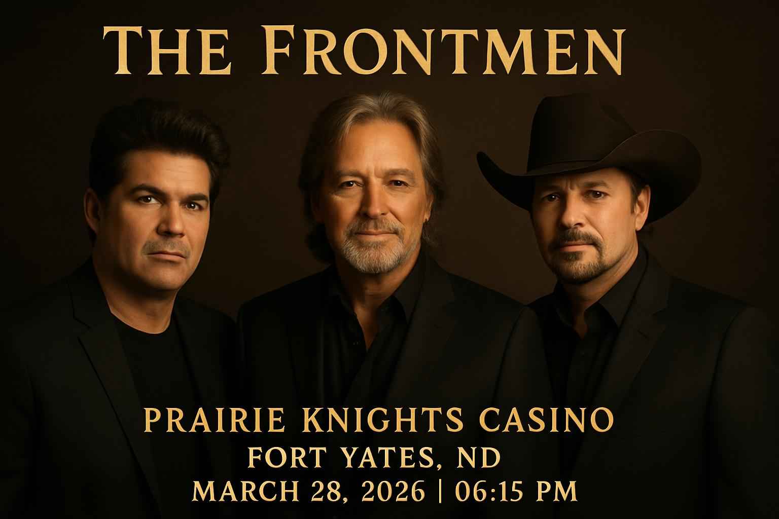 Experience legendary country music when The Frontmen perform live at Prairie Knights Casino in Fort Yates ND on March 28 2026 at 0615 PM. This exclusive concert brings together chart-topping hits and unforgettable harmonies for one night only in North Dakota. Secure premium seats and save on your ticket purchase with exclusive RSVP Event Agency promo codes available now.