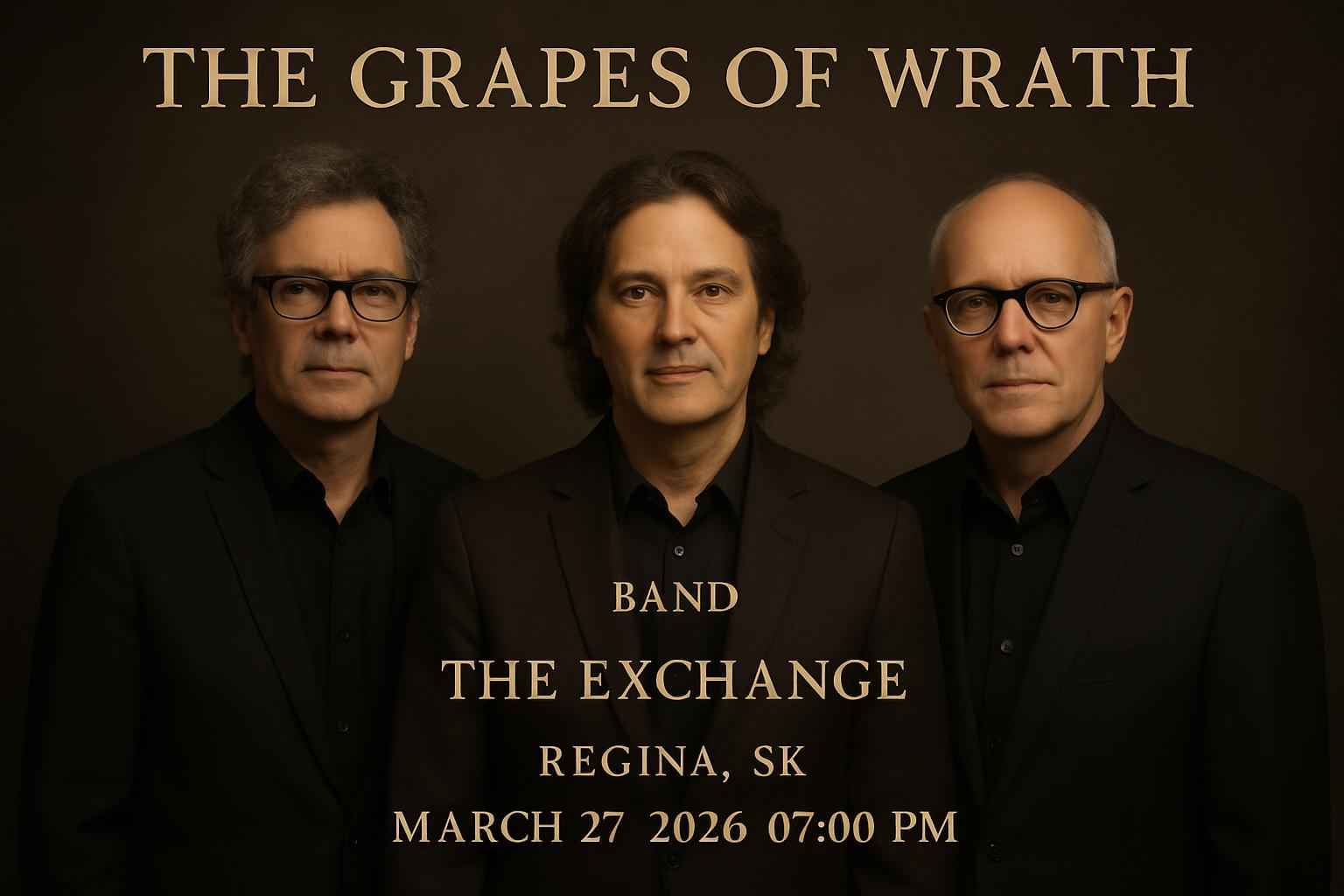 The Grapes of Wrath concert at The Exchange in Regina starts at 7 PM on March 27 2026.