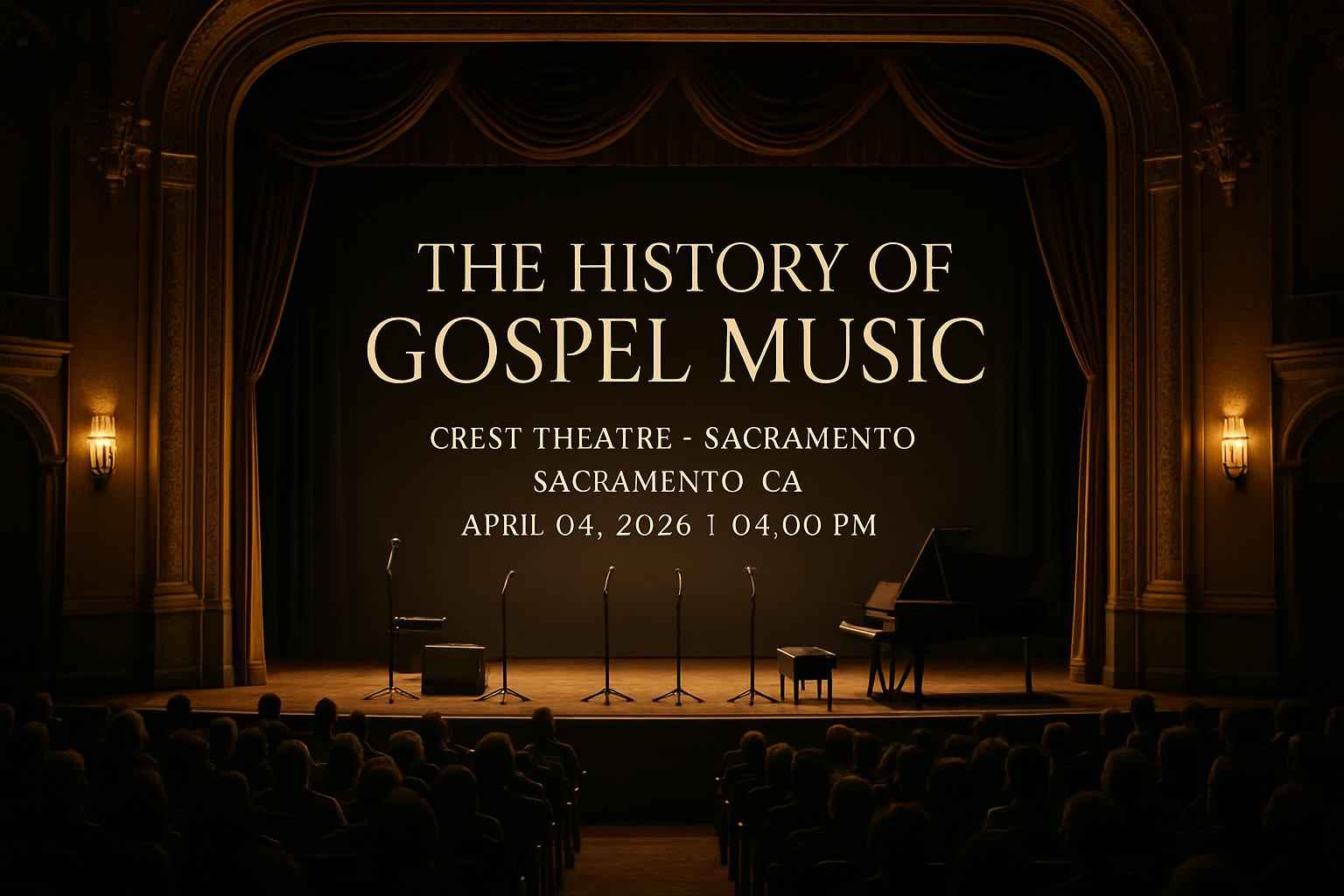 Experience a powerful evening celebrating The History of Gospel Music at Crest Theatre in Sacramento on April 4, 2026 at 4:00 PM. This unforgettable event honors gospel music’s deep roots and its influence on American culture, featuring live performances from renowned gospel artists and local Sacramento talent. Crest Theatre’s historic stage sets the perfect backdrop for a journey through timeless hymns, modern gospel hits, and soul-stirring stories.