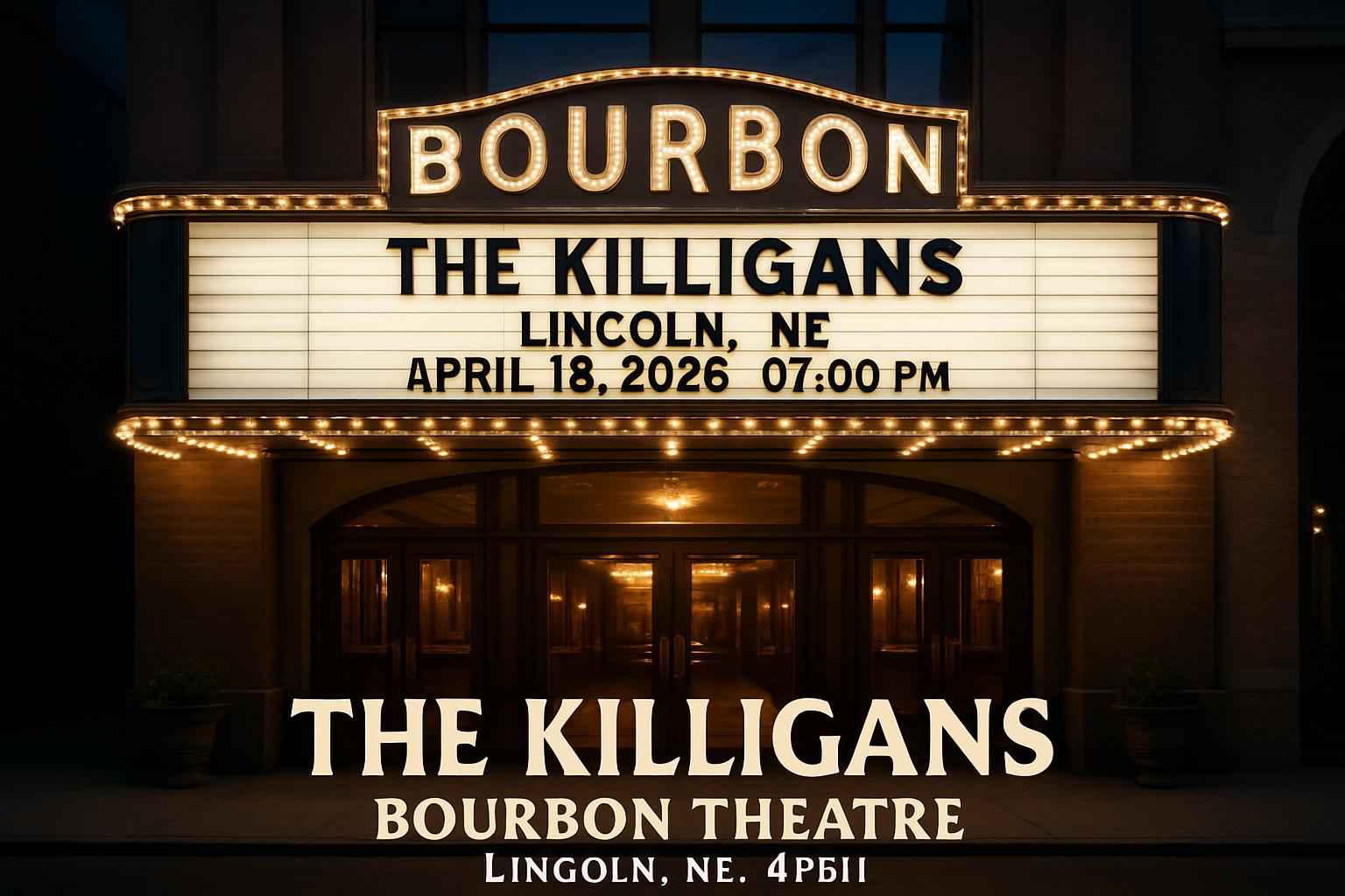 The Killigans perform at Bourbon Theatre Lincoln NE on April 18 2026 at 7 PM.