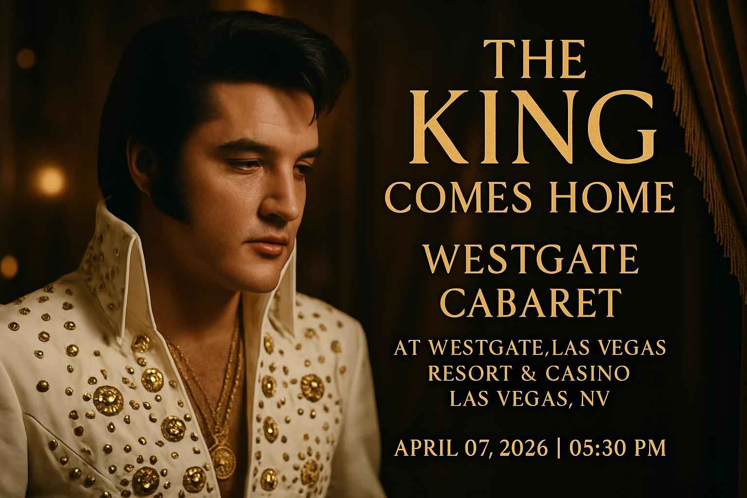 Experience The King Comes Home – Westgate Cabaret at Westgate Las Vegas Resort & Casino in Las Vegas NV on April 07 2026 at 5:30 PM. This top-rated tribute show delivers an unforgettable Elvis Presley experience in the iconic Westgate Cabaret. Secure exclusive coupon codes for The King Comes Home event with RSVP Event Agency for instant savings on your tickets today.