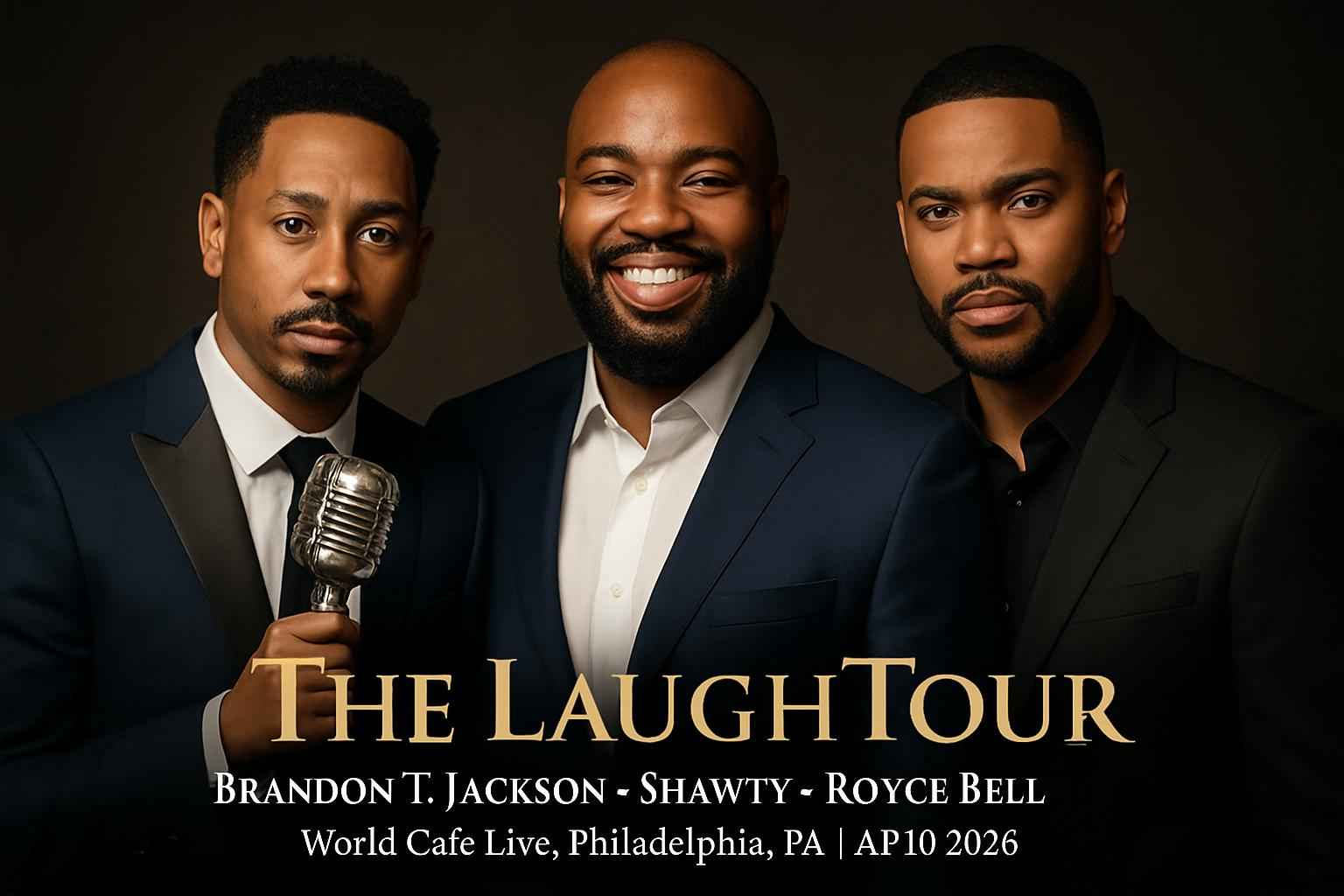 The LaughTour delivers a star-studded comedy lineup to World Cafe Live located at 3025 Walnut Street Philadelphia PA. Featuring stand-up from Brandon T Jackson known for blockbuster films and comedy specials Shawty with his unique stage presence and Royce Bell bringing high-energy laughs this event promises a night of non-stop entertainment. Secure tickets for April 10 2026 starting at 7 PM and enjoy an unforgettable live experience in the heart of Philadelphia.