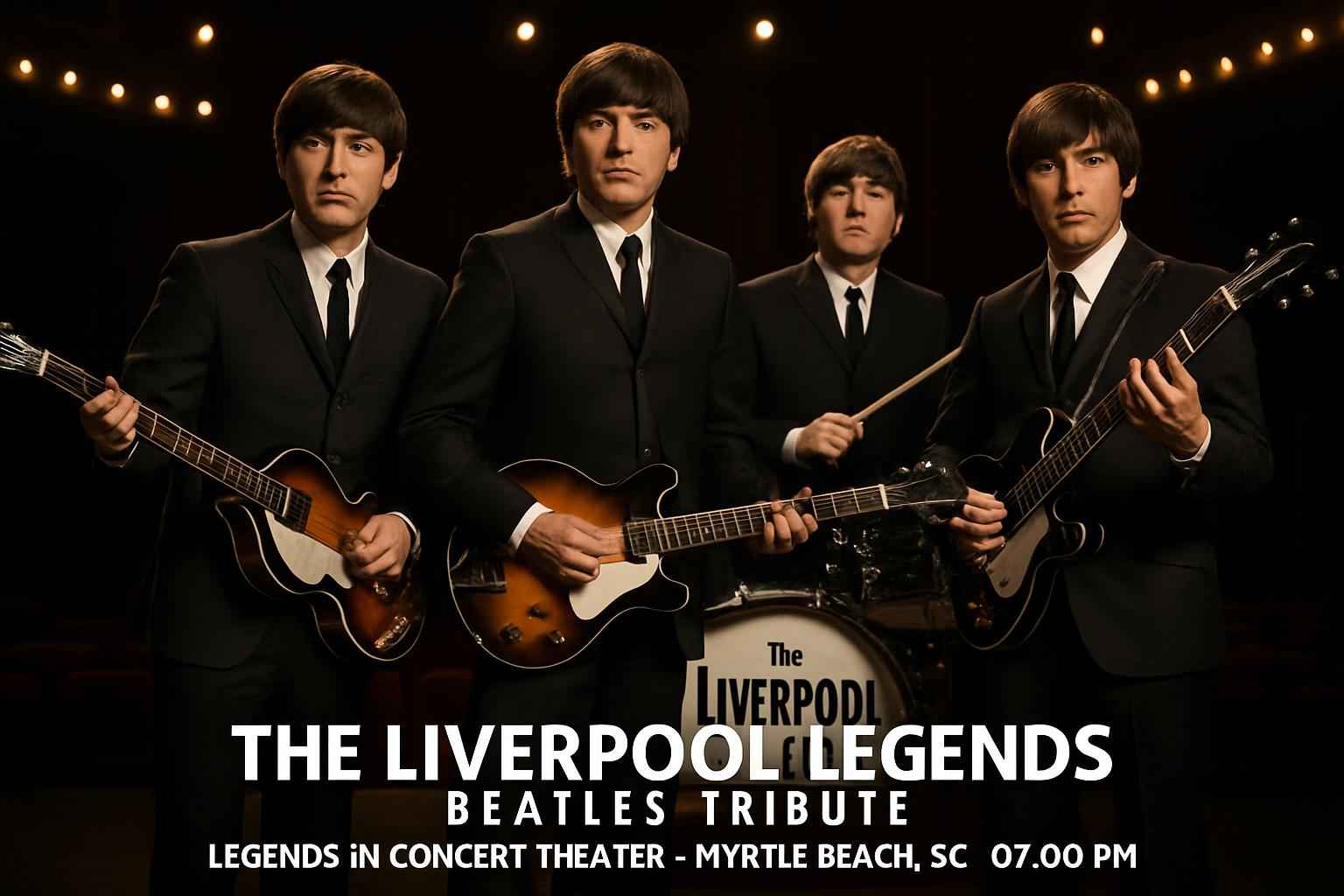 Experience The Liverpool Legends – Beatles Tribute live at Legends in Concert Theater, Myrtle Beach, on February 7, 2026, at 7 PM. Enjoy authentic Beatles music, costumes, and a family-friendly show. Secure early tickets with exclusive RSVP Event Agency promo codes for the best seats and discounts. Onsite parking and accessible seating available.