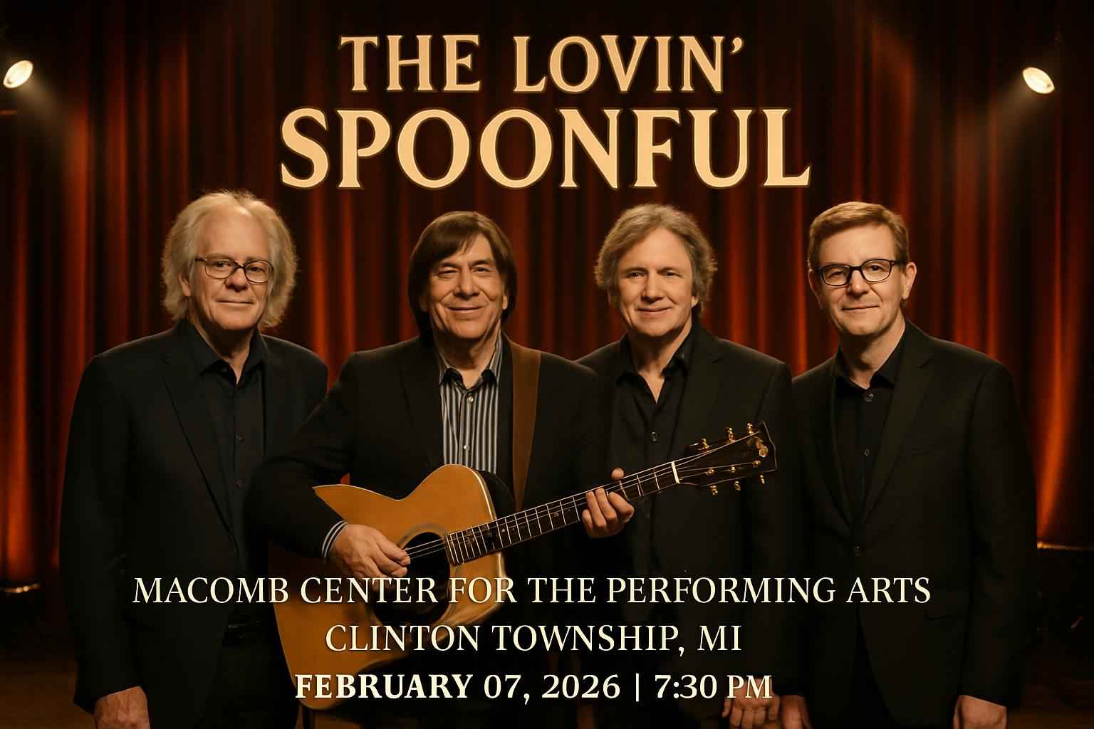Experience The Lovin Spoonful live at Macomb Center For The Performing Arts in Clinton Township, MI, on February 7, 2026, at 7:30 PM. Secure discounted tickets using exclusive promo codes from RSVP Event Agency. Enjoy classic hits in a top-tier venue with ample parking. Early purchase ensures best seats and savings. Visit RSVP for last-minute deals and updates.