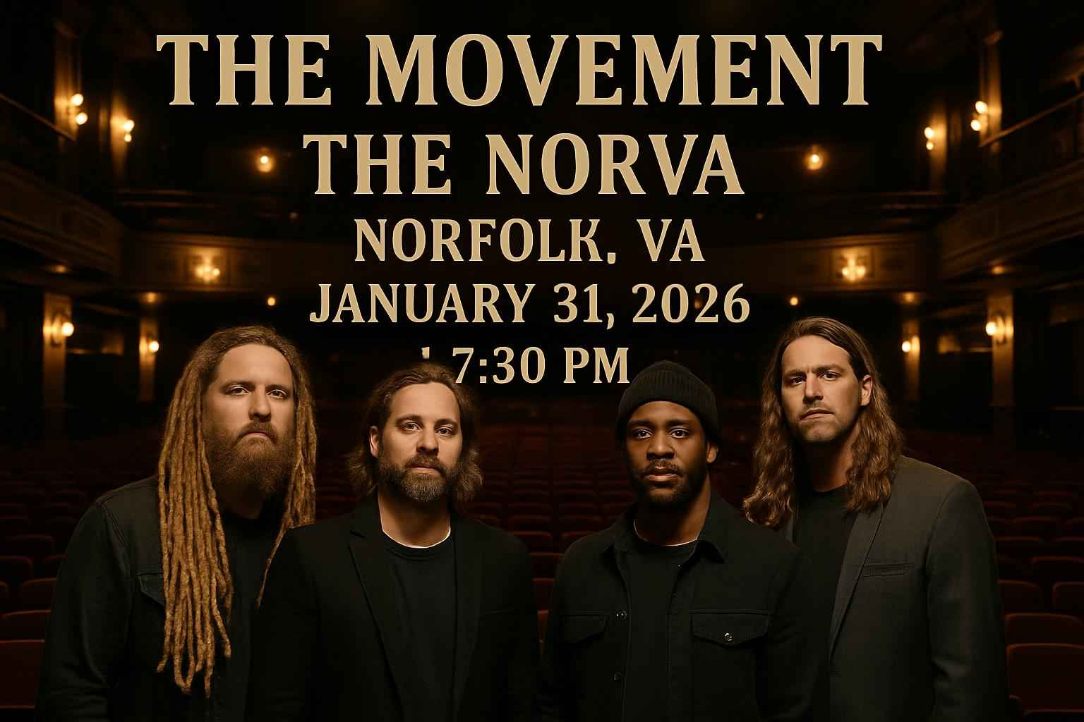 The Movement will perform live at The Norva on January 31 2026 with doors opening at 0630 PM and the show starting at 0730 PM. The Norva is centrally located in downtown Norfolk offering easy access from local neighborhoods and nearby cities. Early arrival is recommended to take advantage of parking and pre-event activities. Experience a night filled with reggae rhythms and vibrant energy as The Movement brings their signature sound to Virginia.
