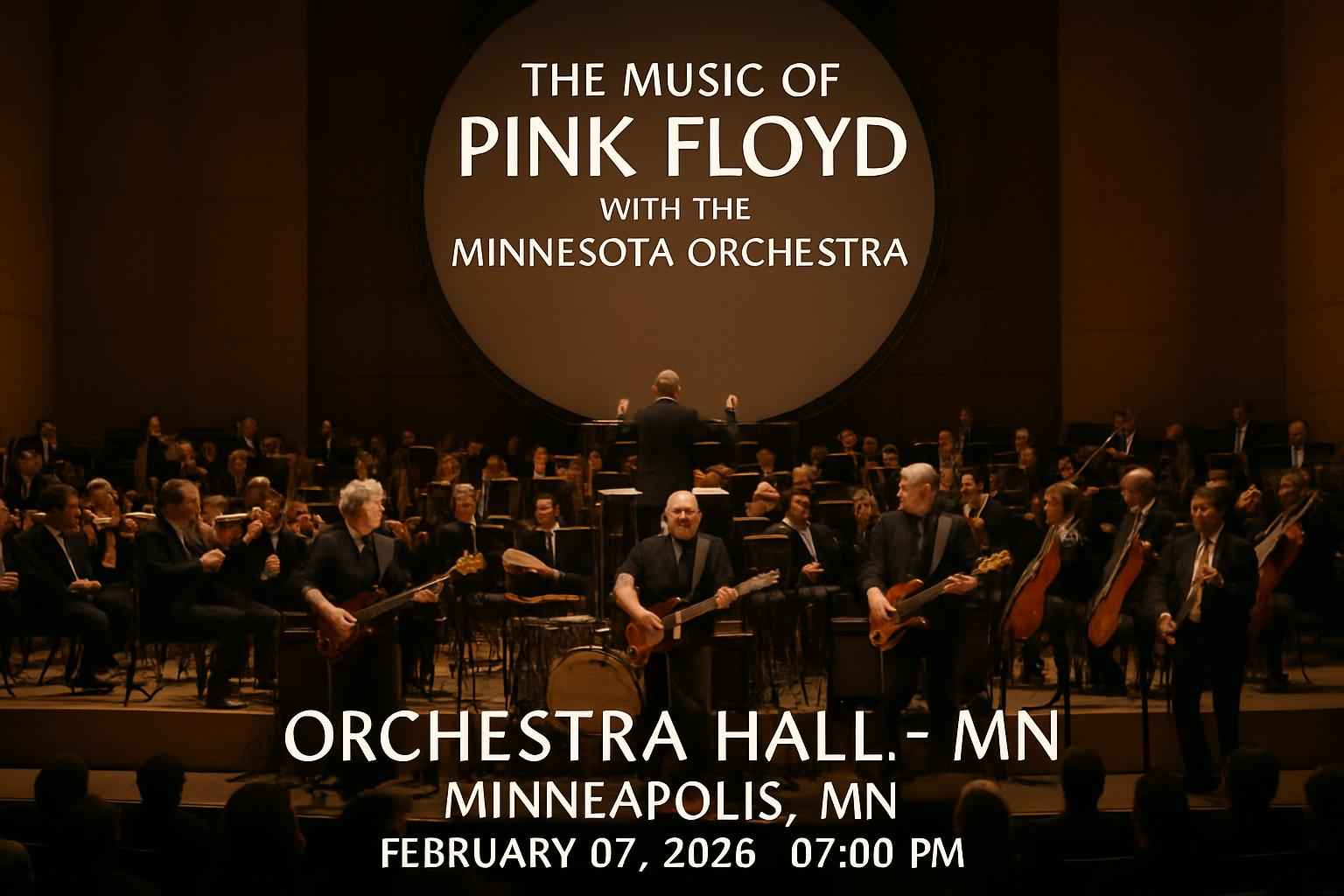 Experience Pink Floyd’s iconic music reimagined with The Minnesota Orchestra at Orchestra Hall, Minneapolis, on February 7, 2026, 7 PM. Enjoy orchestral versions of classics like Comfortably Numb with state-of-the-art acoustics. Secure verified discount tickets and exclusive promo codes through RSVP Event Agency for the best savings on this unique live concert event.