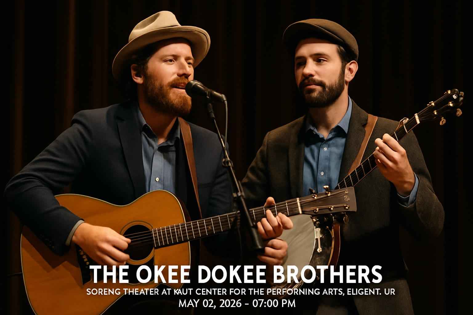 Experience The Okee Dokee Brothers live at Soreng Theater at Hult Center For The Performing Arts in Eugene OR on May 2 2026 at 2 PM. This nationally acclaimed folk and family band delivers a joyful interactive show that brings music lovers together for an unforgettable afternoon in the heart of Eugene. Families and fans searching for exclusive Okee Dokee Brothers coupon codes and event details will find the best ticket deals through RSVP Event Agency.