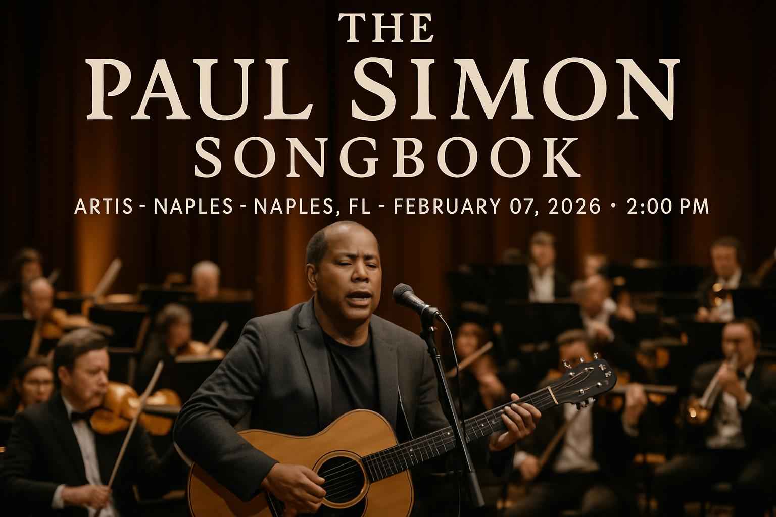 The Paul Simon Songbook at Artis-Naples features a curated setlist celebrating decades of iconic songwriting. Located in the heart of Naples FL Artis-Naples offers comfortable seating and easy access for guests from Southwest Florida. The event starts at 2:00 PM on February 07 2026 and is expected to draw music lovers from the region seeking a memorable afternoon of classic hits.