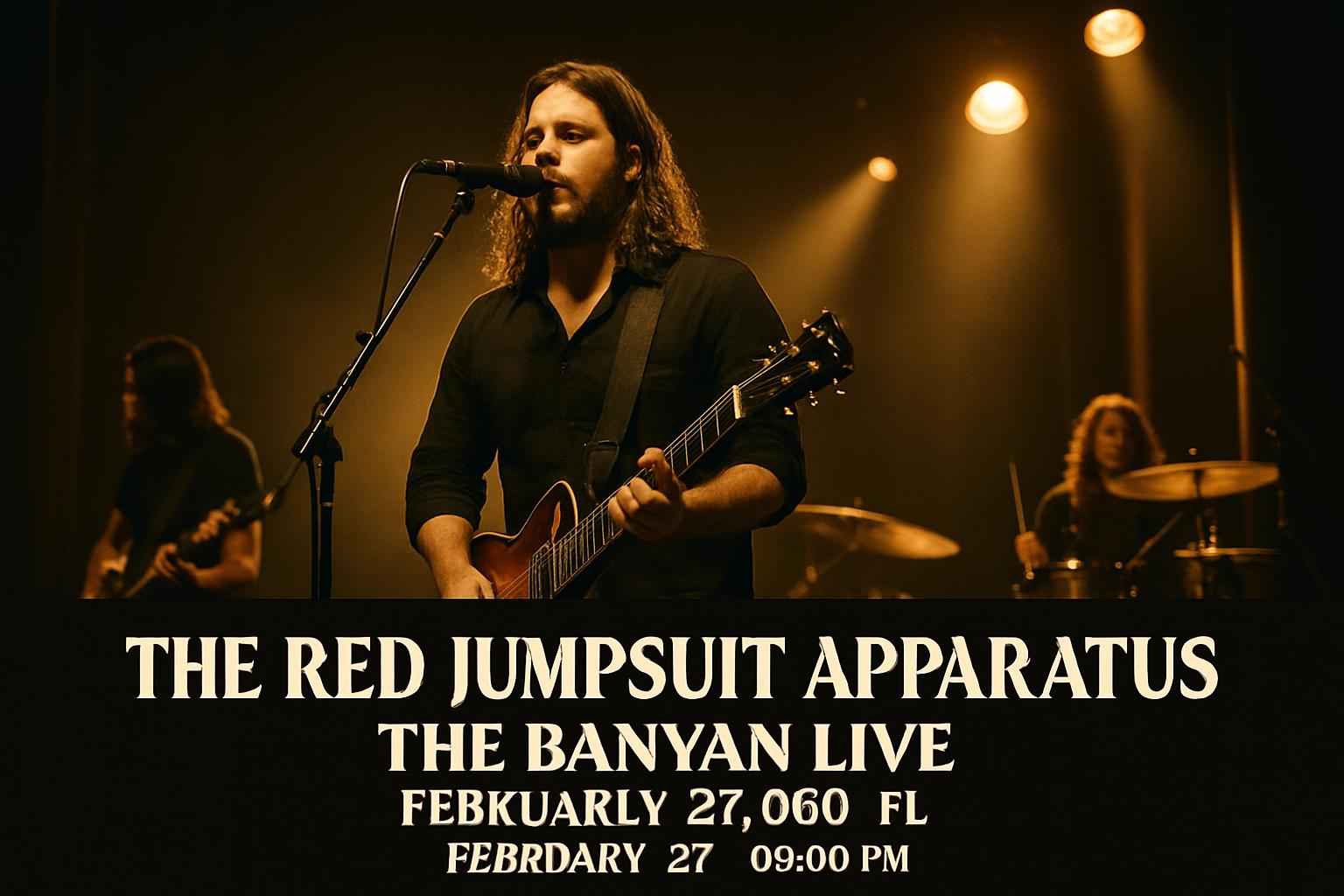 The Red Jumpsuit Apparatus brings their chart-topping hits and passionate performance to The Banyan Live on February 27 2026. Known for powerful vocals and fan-favorite tracks like Face Down and Your Guardian Angel this show promises an unforgettable night. The Banyan Live offers a state-of-the-art sound system and an intimate setting perfect for live alternative rock events in West Palm Beach.