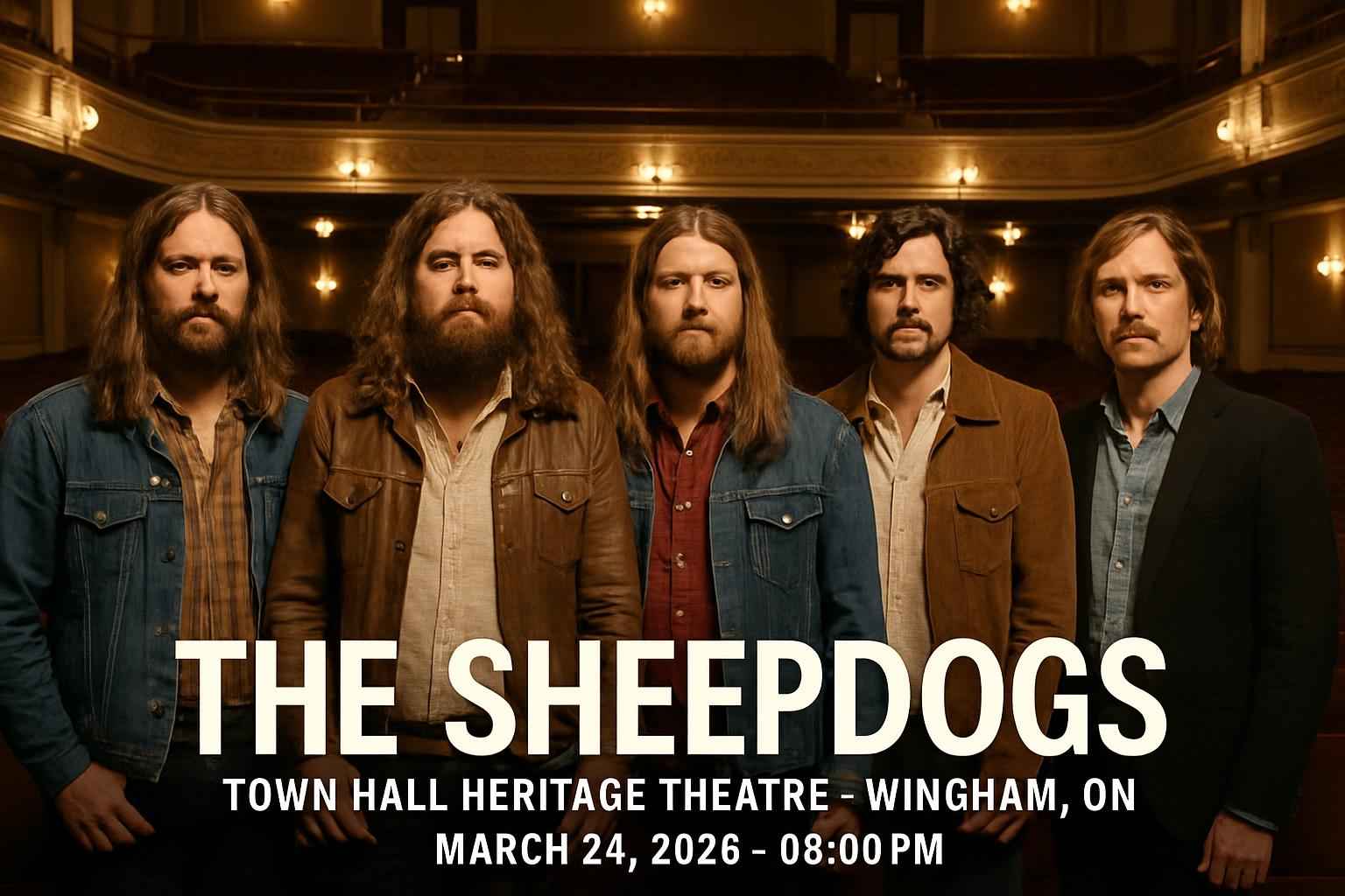 The Sheepdogs play Town Hall Heritage Theatre in Wingham ON on March 24 2026 at 8 PM. Doors open at 7 PM.