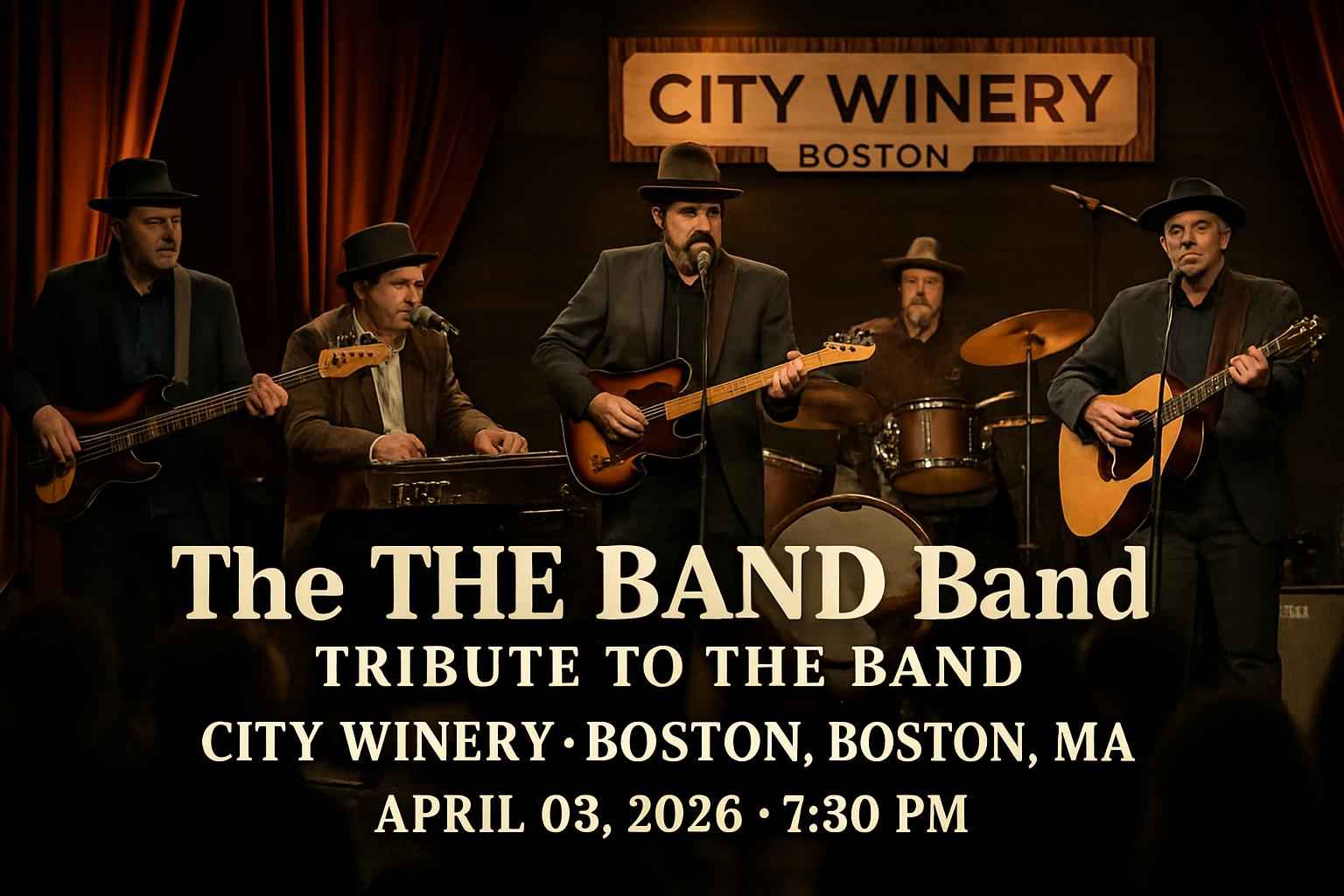 Experience The THE BAND Band – Tribute to The Band at City Winery Boston on April 03 2026 at 0730 PM. This highly anticipated live music event in Boston MA brings the timeless sound of The Band to life for fans of classic rock and live tribute performances. Secure your spot at City Winery Boston and enjoy an unforgettable night filled with legendary hits and authentic musical energy. RSVP Event Agency offers exclusive coupon codes for The THE BAND Band show so you can reserve your tickets at the best available price today.