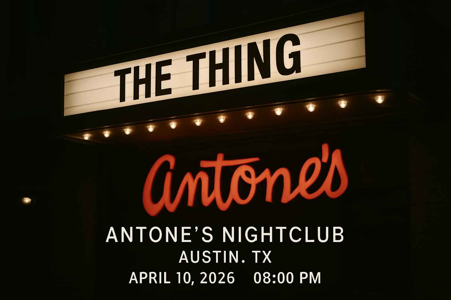 Experience The Thing at Antones Nightclub in Austin TX on April 10 2026 at 8 PM. Secure exclusive access to this highly anticipated live music event featuring the best local and national talent. Antones Nightclub is known for its legendary sound and intimate setting making every show unforgettable. Use RSVP Event Agency for verified coupon codes and promotional deals to maximize your event experience.