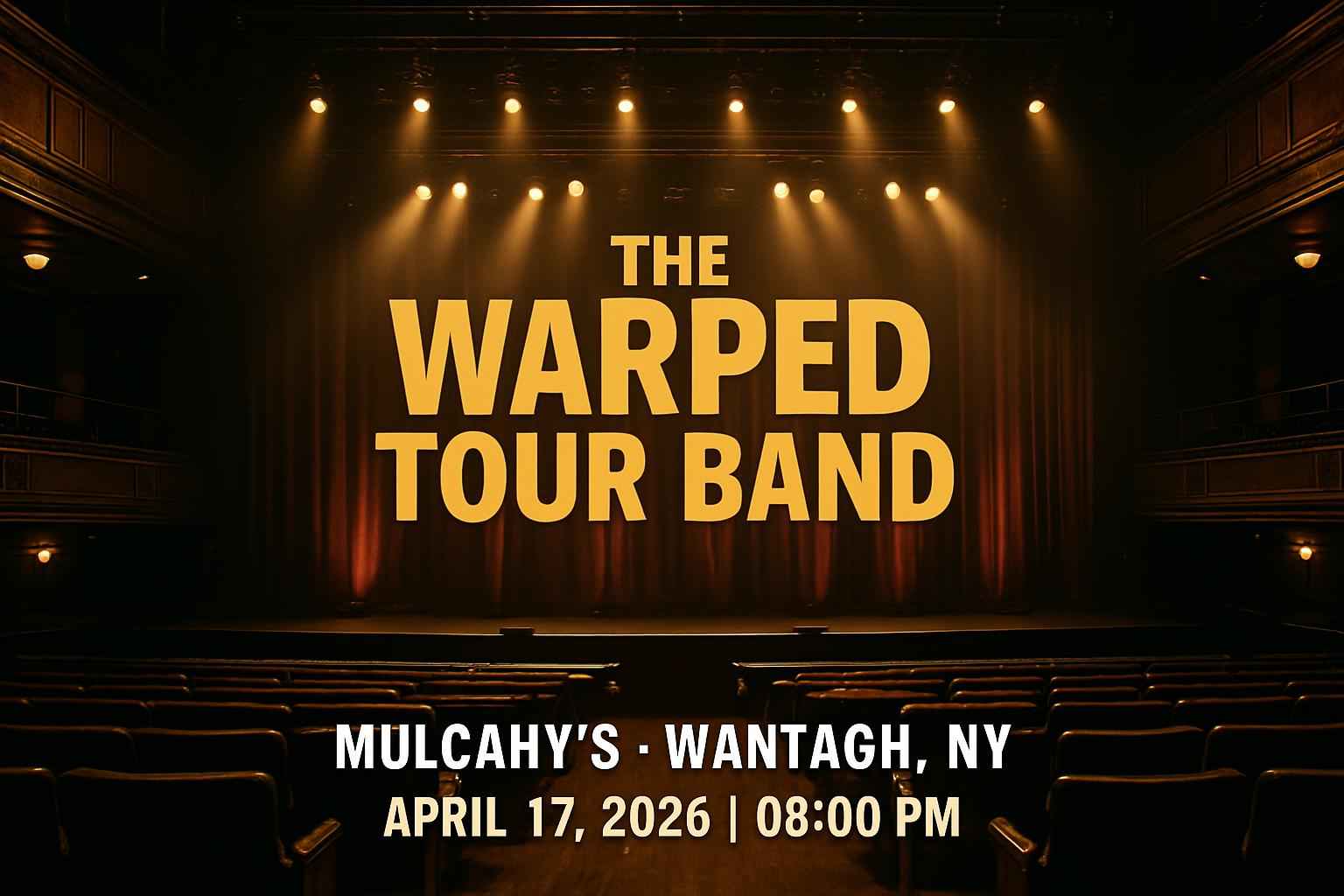 Experience the high-energy sounds of The Warped Tour Band live at Mulcahys in Wantagh NY on April 17 2026 at 8 PM. This exclusive tribute event brings the best of pop punk and emo anthems with local fans searching for The Warped Tour Band Mulcahys ticket discounts and verified coupon codes. RSVP Event Agency provides valuable promo codes and reliable event info for the Wantagh NY music scene.