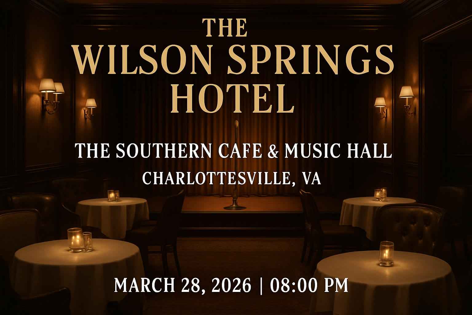The Wilson Springs Hotel plays at The Southern Cafe and Music Hall Charlottesville VA on March 28 2026 with the show starting at 8 PM.