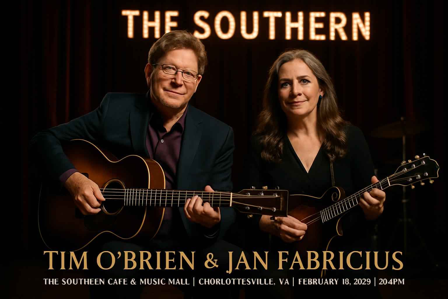 Tim OBrien & Jan Fabricius perform at The Southern Cafe and Music Hall on February 12 2026. The show begins at 8 PM with doors opening at 7 PM.