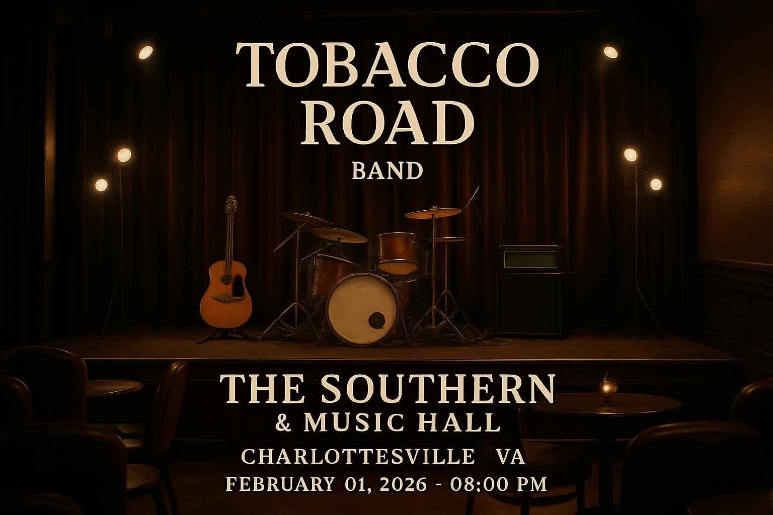 Tobacco Road – Band brings high-energy performances and classic southern sound to The Southern Cafe & Music Hall in Charlottesville VA. The concert starts at 800 PM on February 01 2026 offering a unique blend of country rock and local music culture. Attendees enjoy a welcoming setting near downtown with easy access to Charlottesville parking and dining. This event draws music lovers searching for live bands and top-rated music events in Virginia.