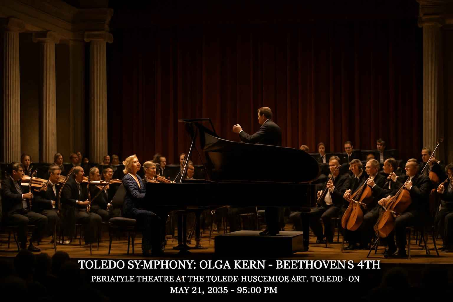 Toledo Symphony and Olga Kern present Beethovens 4th Piano Concerto at the historic Peristyle Theatre located inside the Toledo Museum of Art. The concert starts at 8 PM on May 1 2026 and features a full symphonic program with guest soloist Olga Kern. This event is one of the top classical music performances in Toledo and draws both local audiences and visitors seeking a premier cultural night out.