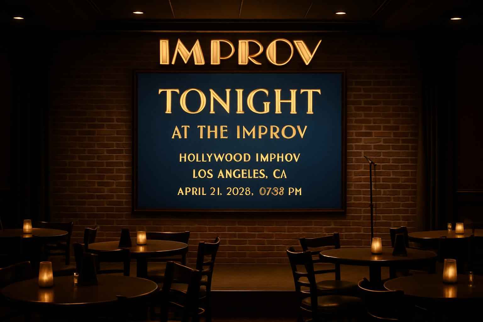 Tonight At the Improv takes place at the historic Hollywood Improv located on Melrose Avenue in Los Angeles. The show begins at 09:30 PM on Friday April 17 2026. Attendees enjoy a diverse lineup of nationally recognized comedians and local rising stars. This venue is known for its intimate setting providing every guest a close view of the stage and an authentic Los Angeles comedy club experience.
